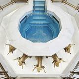 Daphne white stone tile from Sorrento, Florida, is utilized throughout the entry, baptistry and brides’ room.