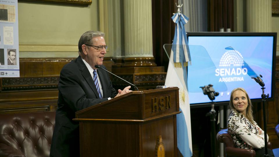 Elder Jeffrey R. Holland of the Quorum of the Twelve Apostles of The Church of Jesus Christ of Latter-day Saints spoke to members of the Senate and the Chamber of Deputies in Argentina May 31, 2018, on how to strengthen families and communities in Argentina. The visit was a part of a six-day trip (May 26 to May 31) that included stops in Argentina and Uruguay.