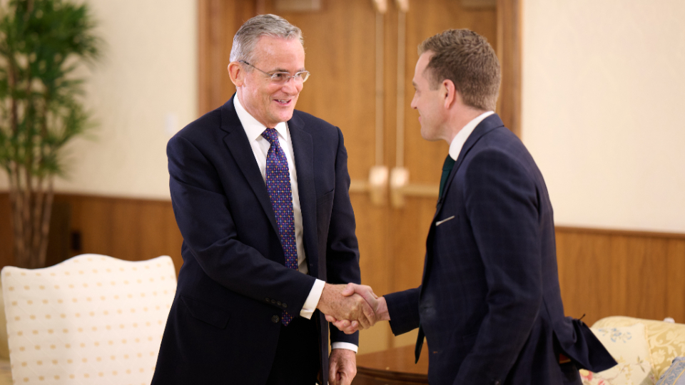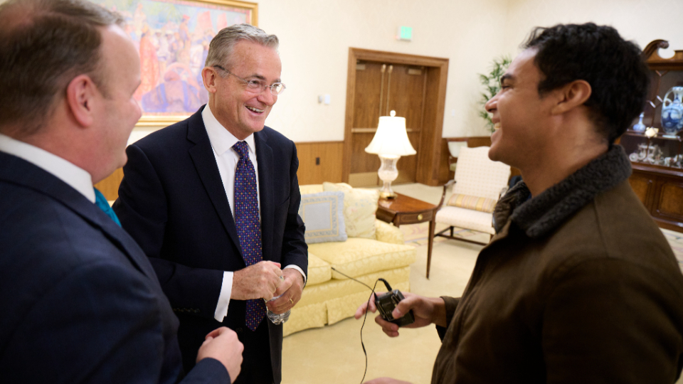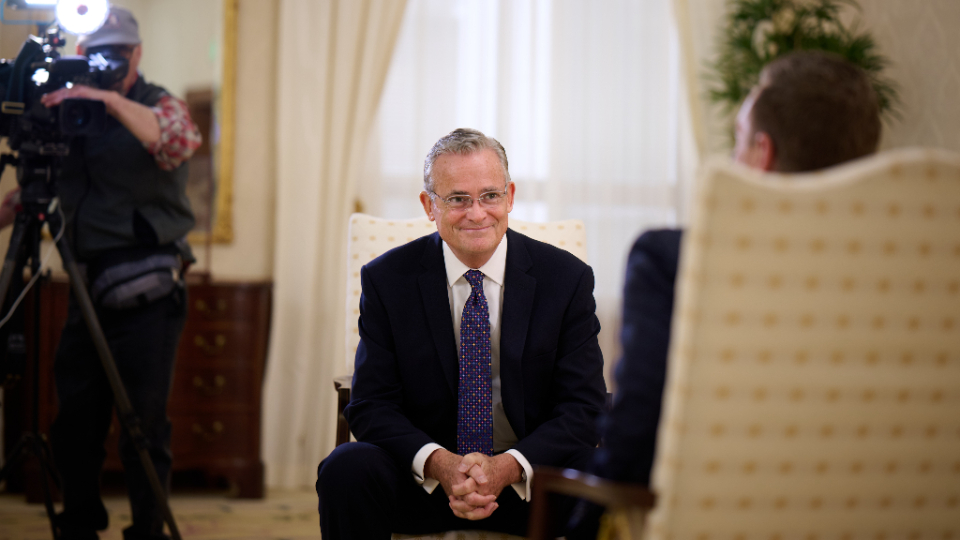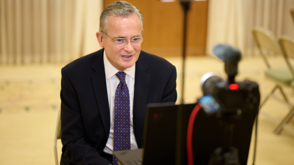 This was the newest Apostle’s first time speaking to journalists since his call 47 days ago. In a five-minute interview with Church Communication staff, Elder Kearon reflected on his conversion to The Church of Jesus Christ of Latter-day Saints as an adult and his witness of Christ as the source of all peace.