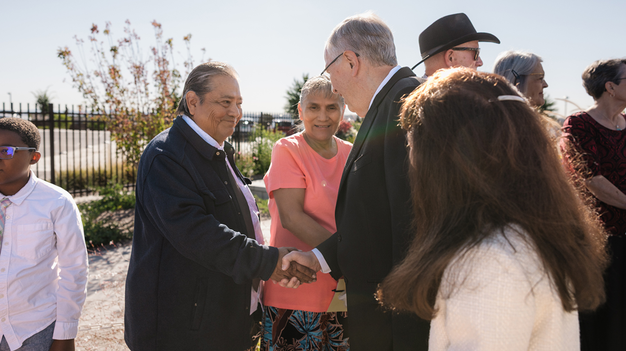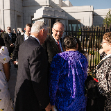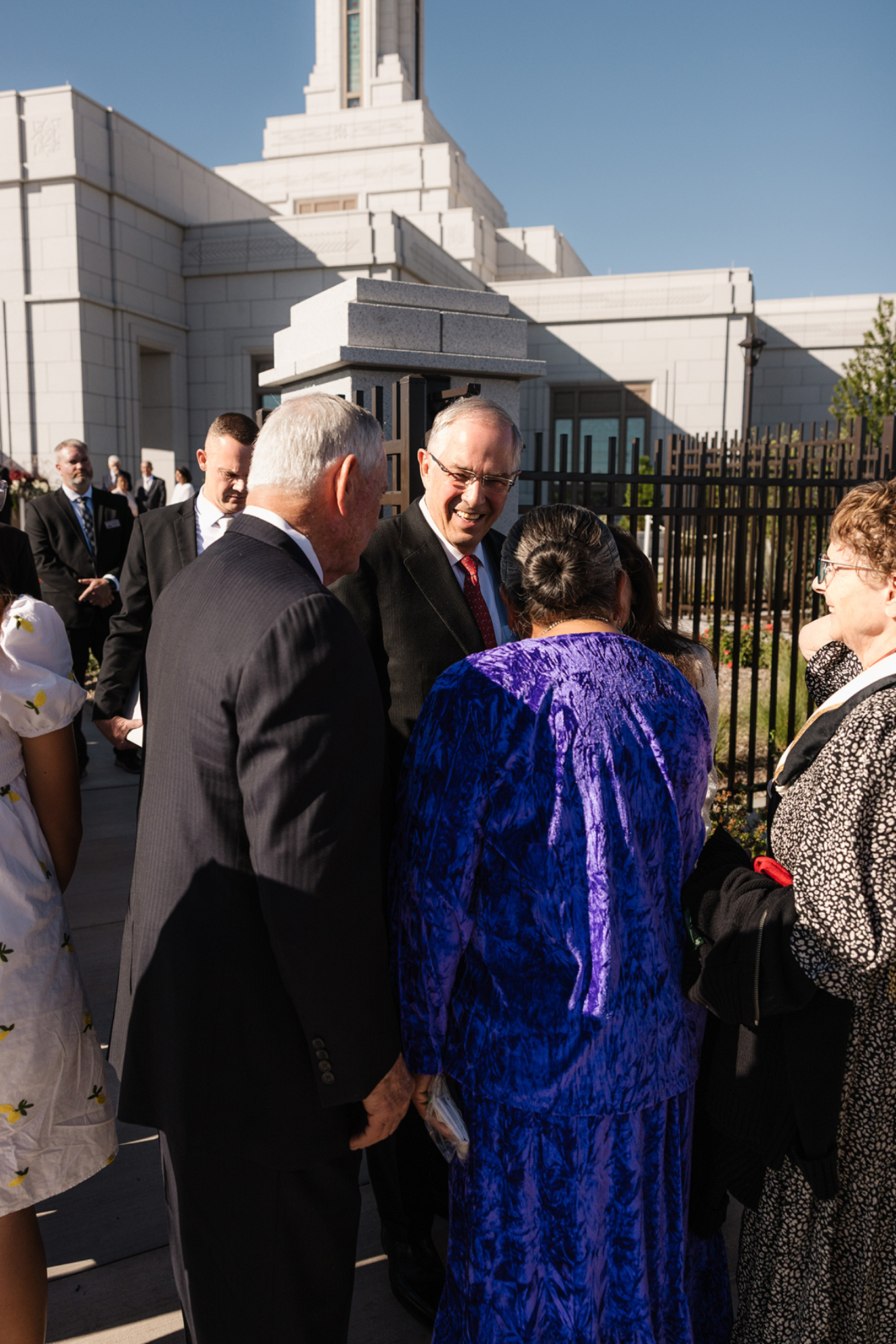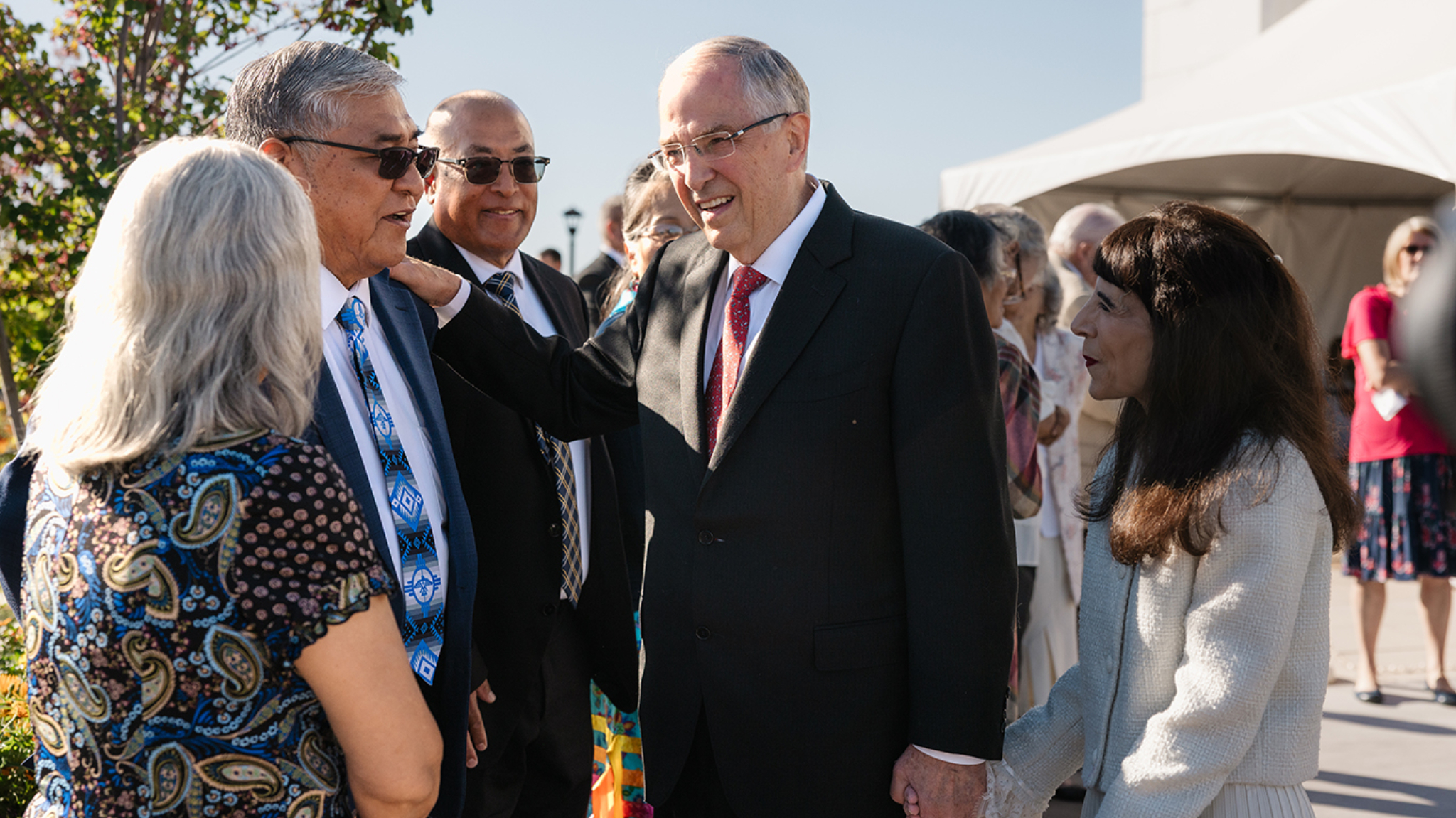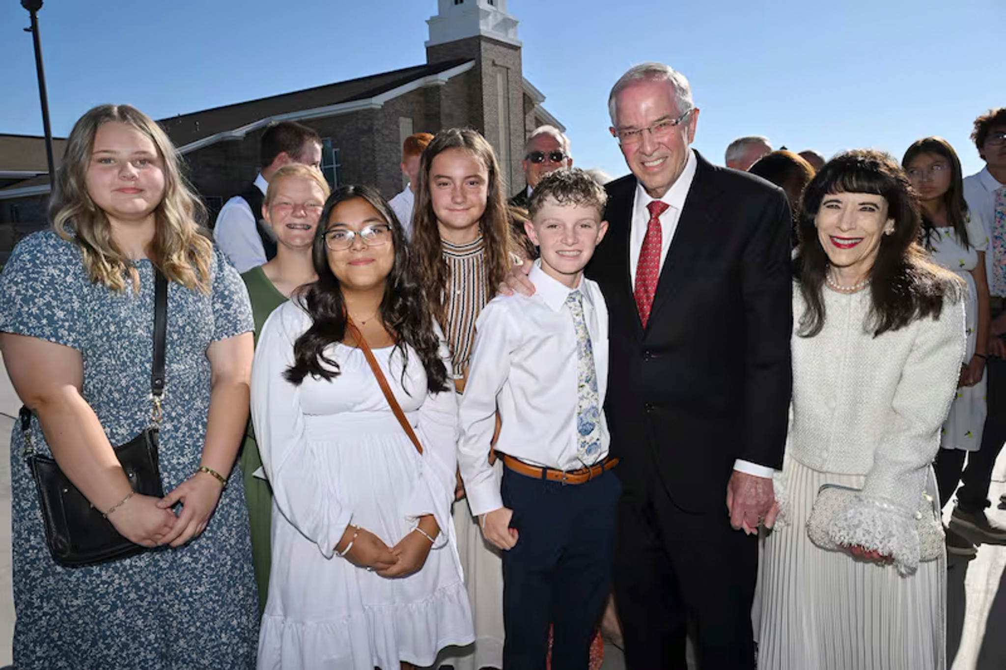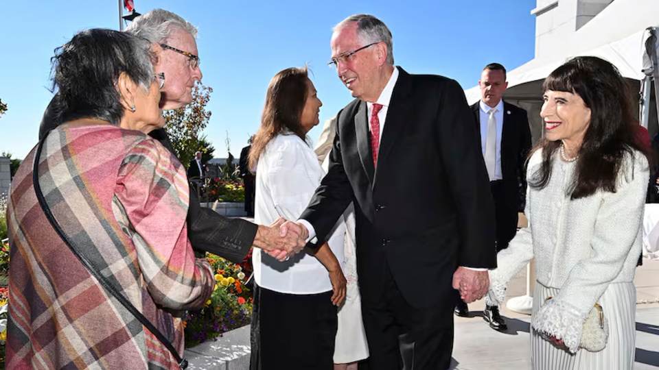 Elder Neil L. Andersen of the Quorum of the Twelve Apostles and his wife, Kathy, greet Latter-day Saints waiting in line for the dedication of the Farmington New Mexico Temple on Sunday, August 17, 2025.In his dedicatory prayer on the Farmington temple, Elder Andersen said: “Let this, Thy house, be a sanctuary of peace, a refuge from the distractions of the world. We pray that here in this holy temple the incomparable value of each individual, each son or daughter of God, will be counted greater than all the treasures of the world, allowing the goodness of each disciple to shine in splendor beyond any consideration of cultural identity, personal prosperity or worldly notoriety.”
