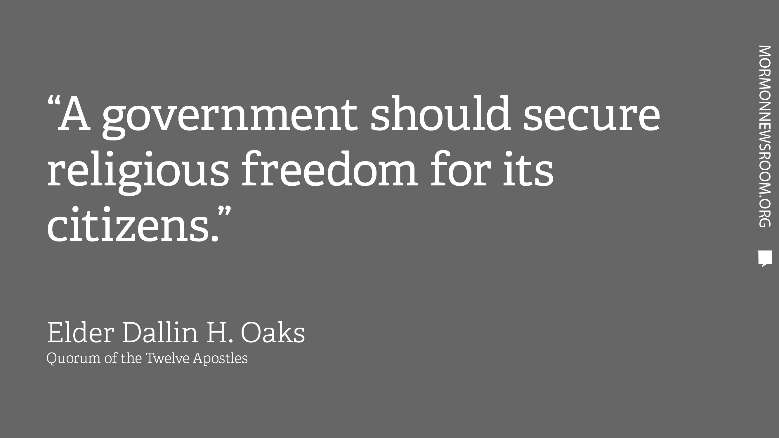 “A government should secure religious freedom for its citizens,” argued Elder Oaks, a former Utah Supreme Court judge and University of Chicago law professor who has been writing and speaking on religious freedom for more than 50 years.