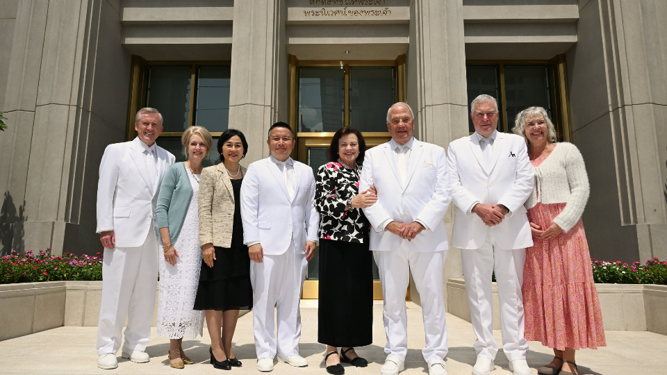 That includes the 1966 dedication of Thailand for the preaching of the gospel by Elder Gordon B. Hinckley, then of the Quorum of the Twelve Apostles and later President of the Church, and the dedication of the first church meetinghouse in the country in 1974 by Elder David B. Haight of the Twelve.