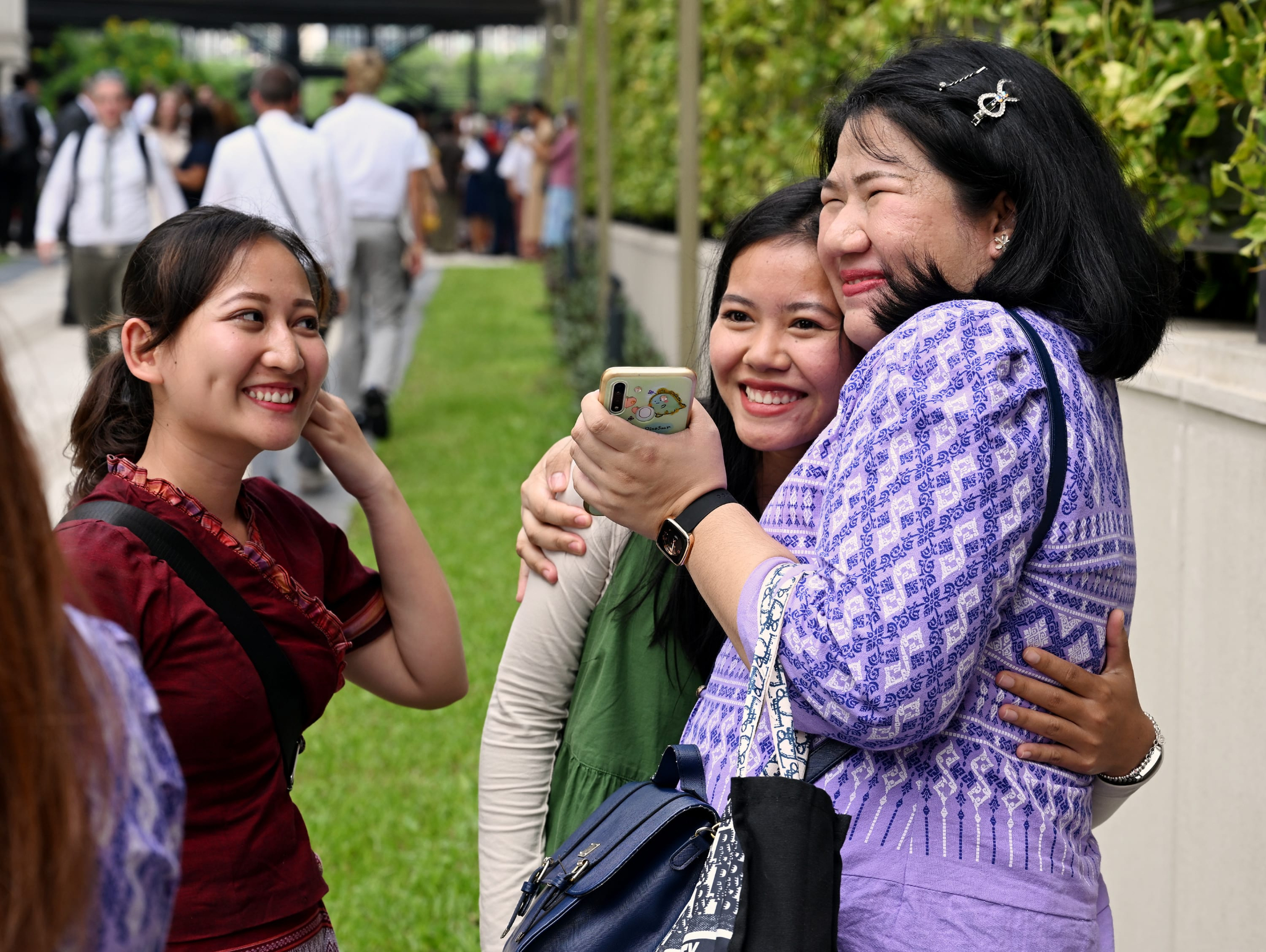 Latter-day Saints visit and hug after attending the first session of the Bangkok Thailand Temple dedication on Sunday, October 22, 2023.Church membership in Thailand now exceeds 23,000 in more than 40 congregations, with meetinghouses throughout Bangkok and in most large urban centers in the country, including Chiang Mai, Nakhon Ratchasima, Khon Kaen, Udon Thani and Ubon Rachathani.