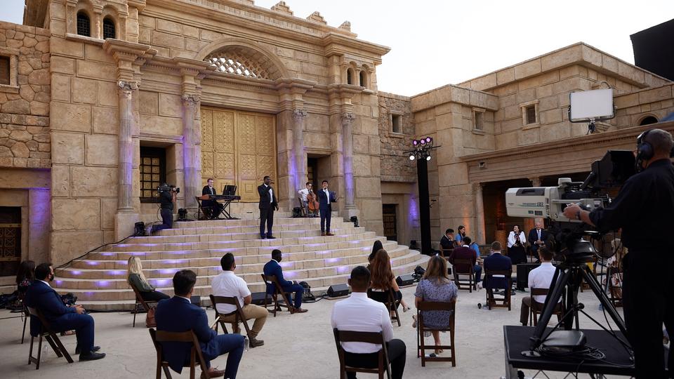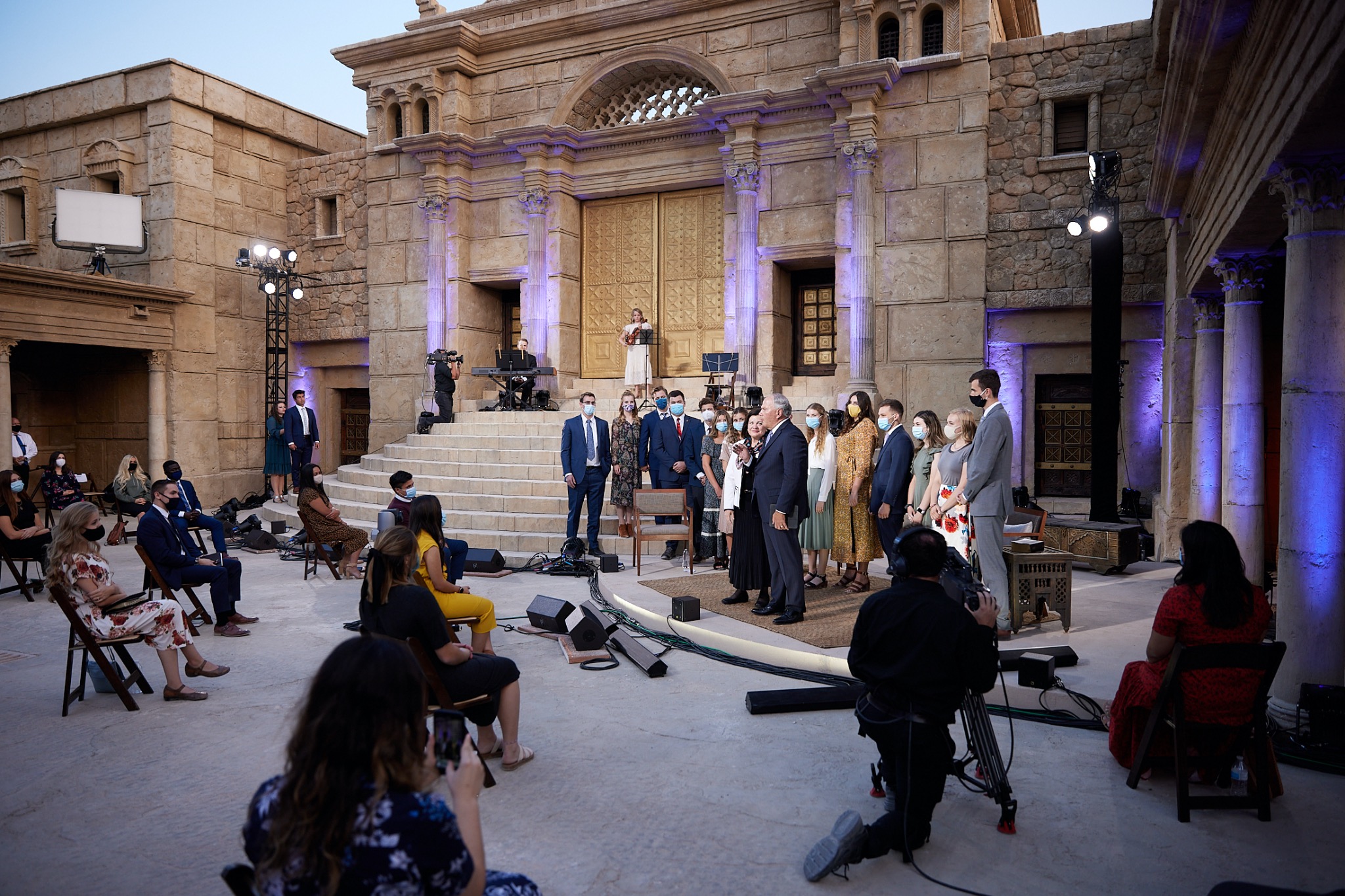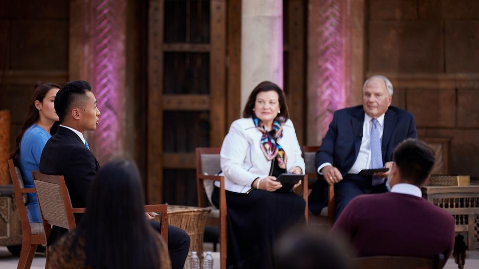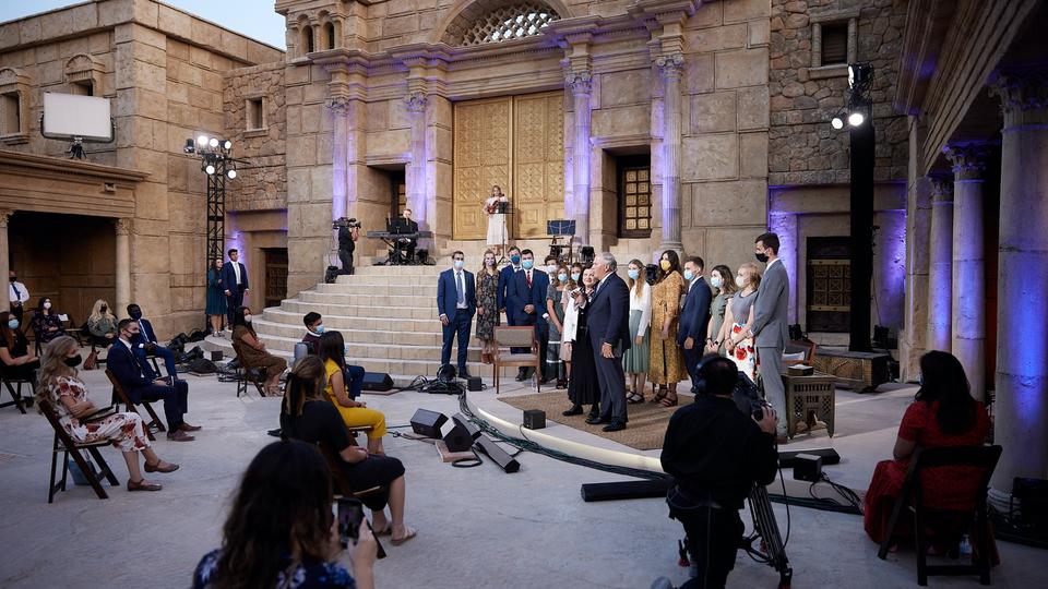 The apostle and his wife answered questions submitted by young adults through social media leading up to the event. The Sunday evening broadcast originated from the Church’s movie set of ancient Jerusalem in Goshen, Utah, that included a limited number of guests.