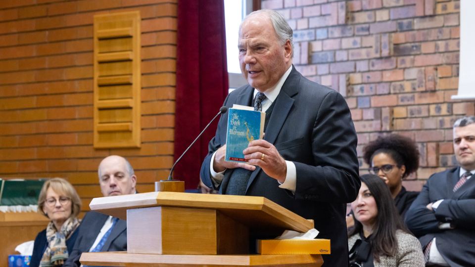 “We believe the Bible and the Book of Mormon to be the word of God,” he explained. “I brought for this interview my missionary Book of Mormon that I used over 50 years ago [1970–1972] when I was a young missionary in New York City. I read this book many times; on my mission is where I gained my own belief of the Book of Mormon.”
