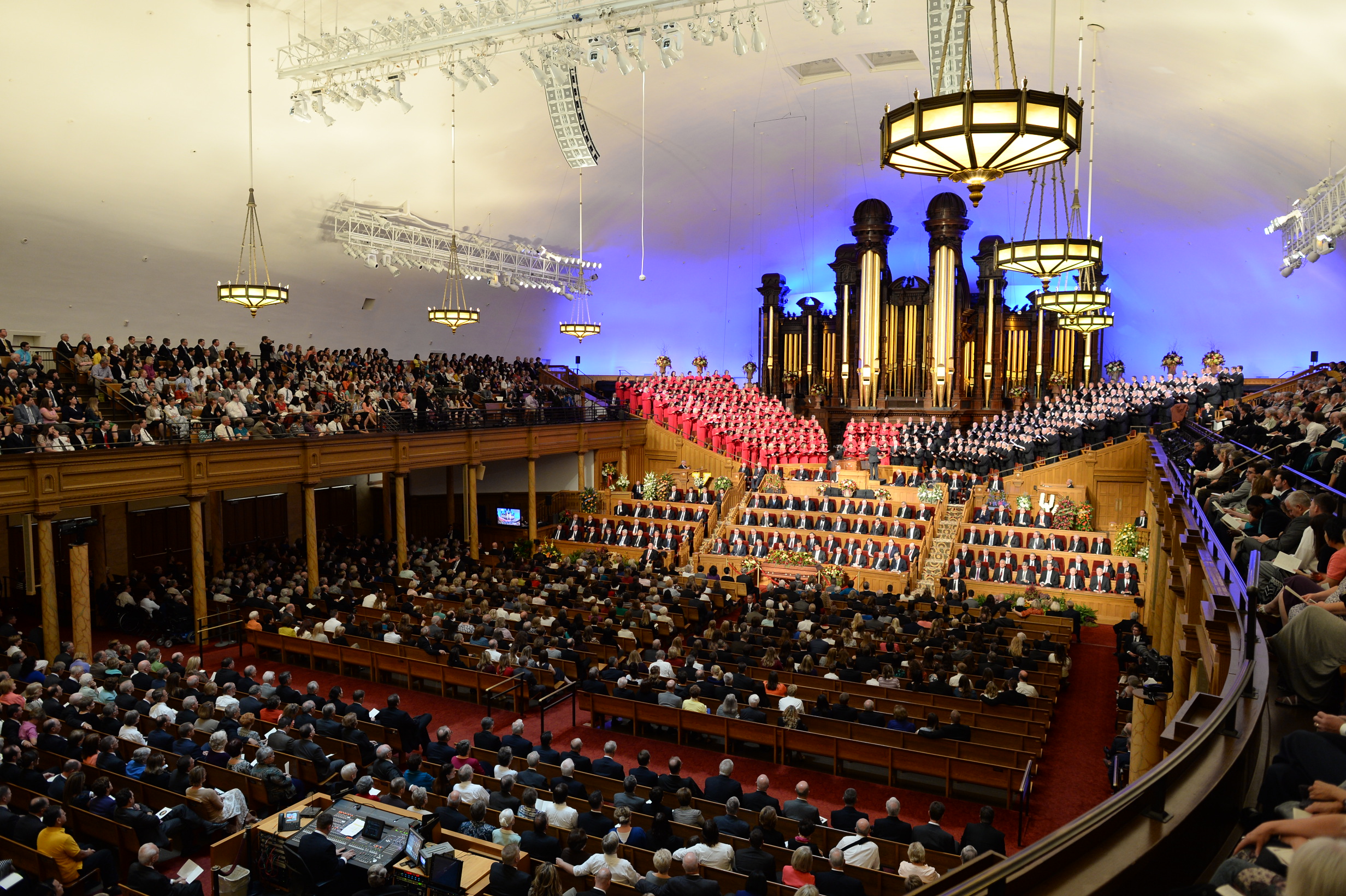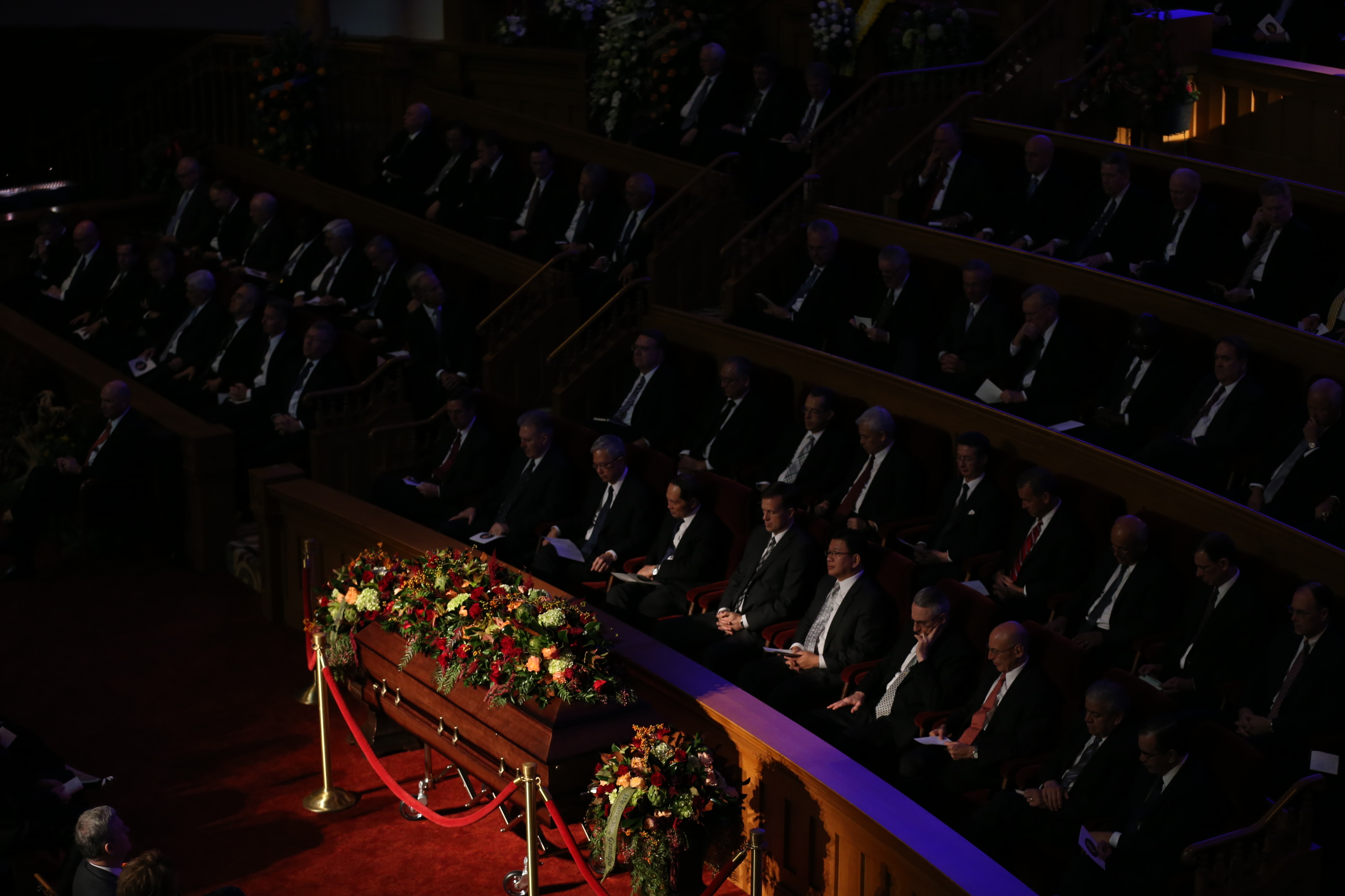 Approximately 2,500 people filled the historic Tabernacle to capacity for the funeral, while many others attended the services in the overflow seating of the nearby Assembly Hall. Thousands more watched the broadcast live in English, Spanish and Portuguese on LDS.org and on the Church satellite system.