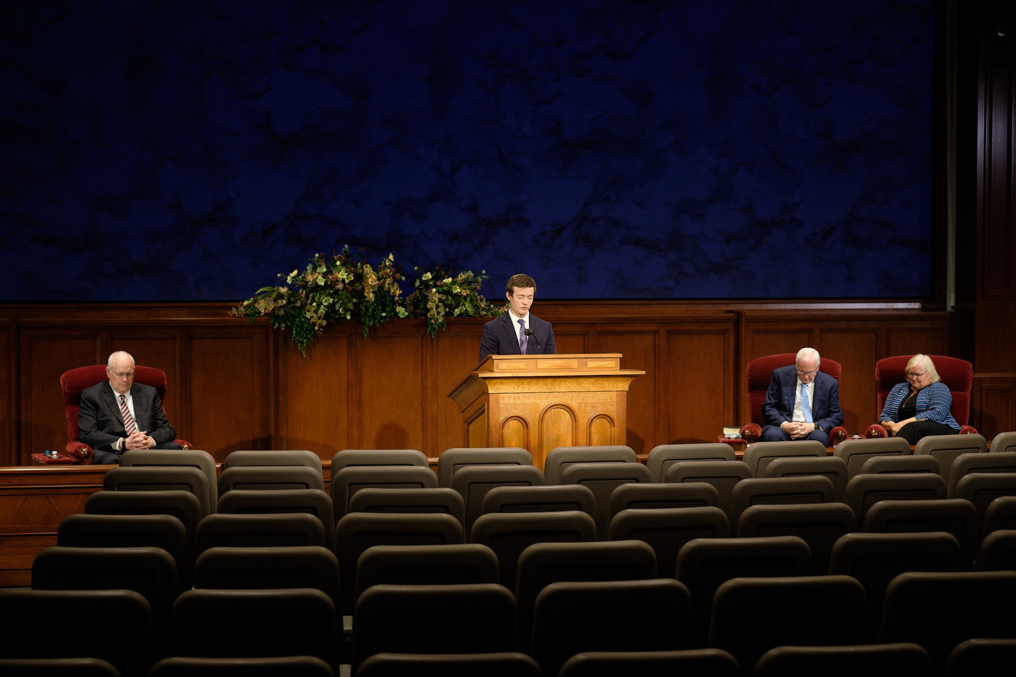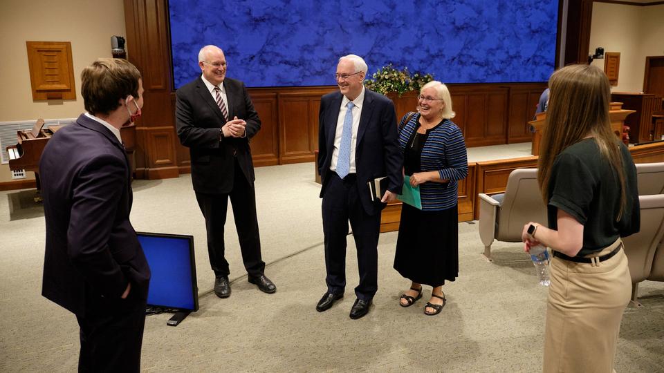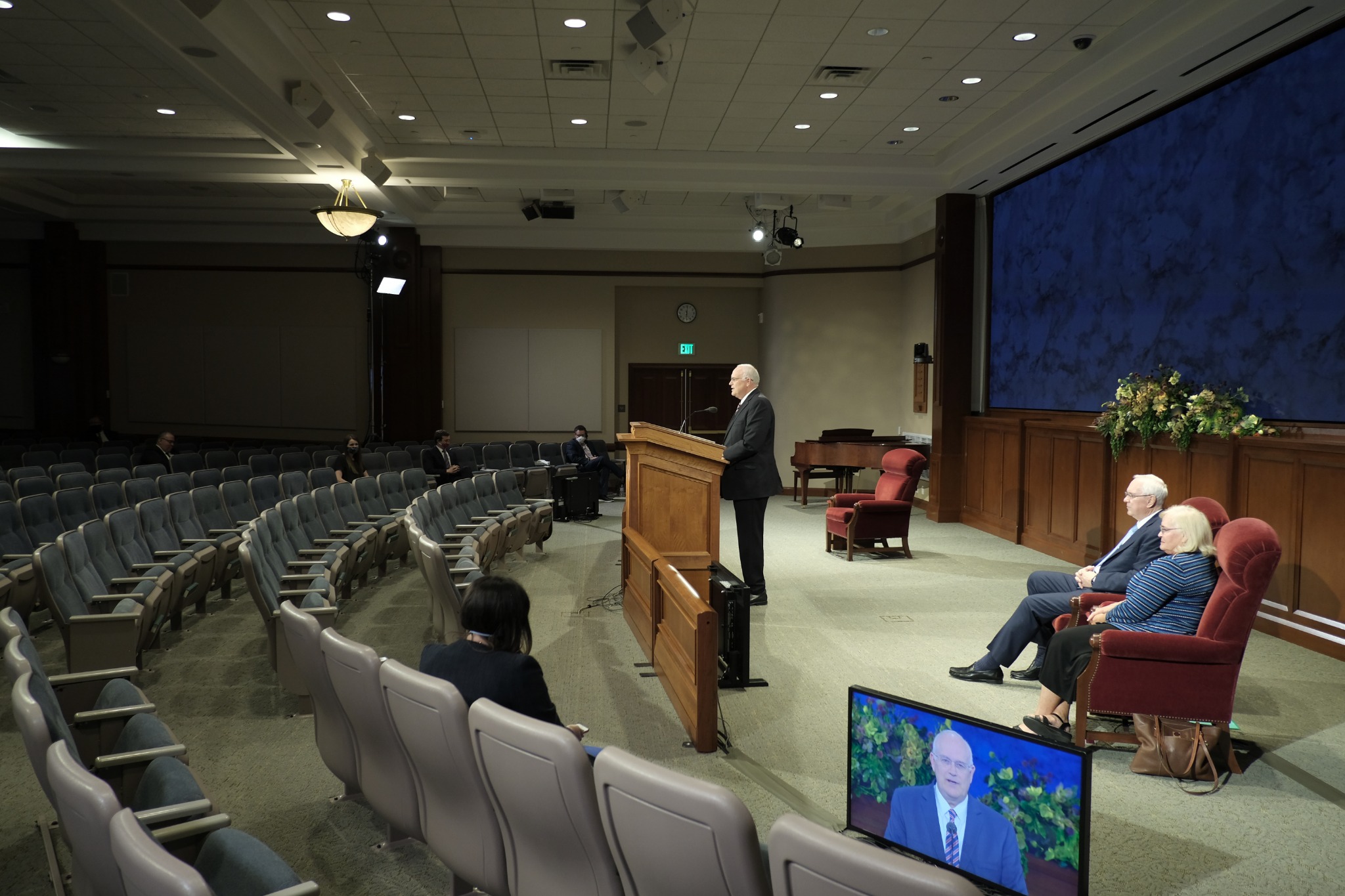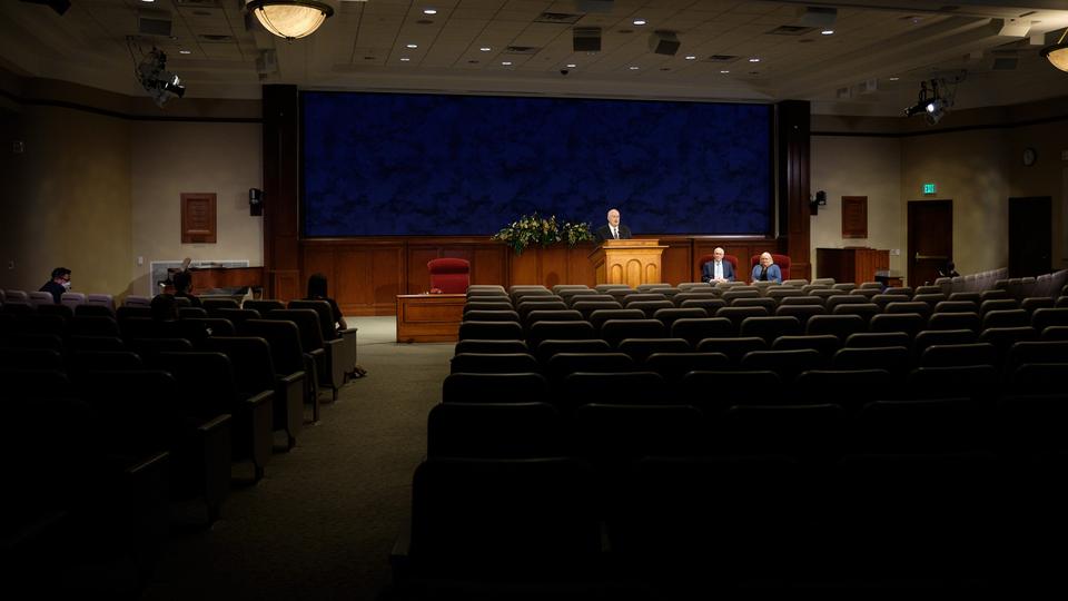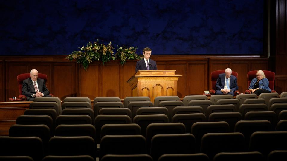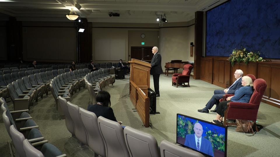 Like the faith’s April 2020 general conference, Sunday’s global broadcast originated from the Church Office Building auditorium on Temple Square in Salt Lake City. Attendance was limited to those who spoke and offered prayers. Sunday’s devotional was streamed live in 18 languages. In the coming days, it will be archived in 39 languages on broadcast.churchofjesuschrist.org.