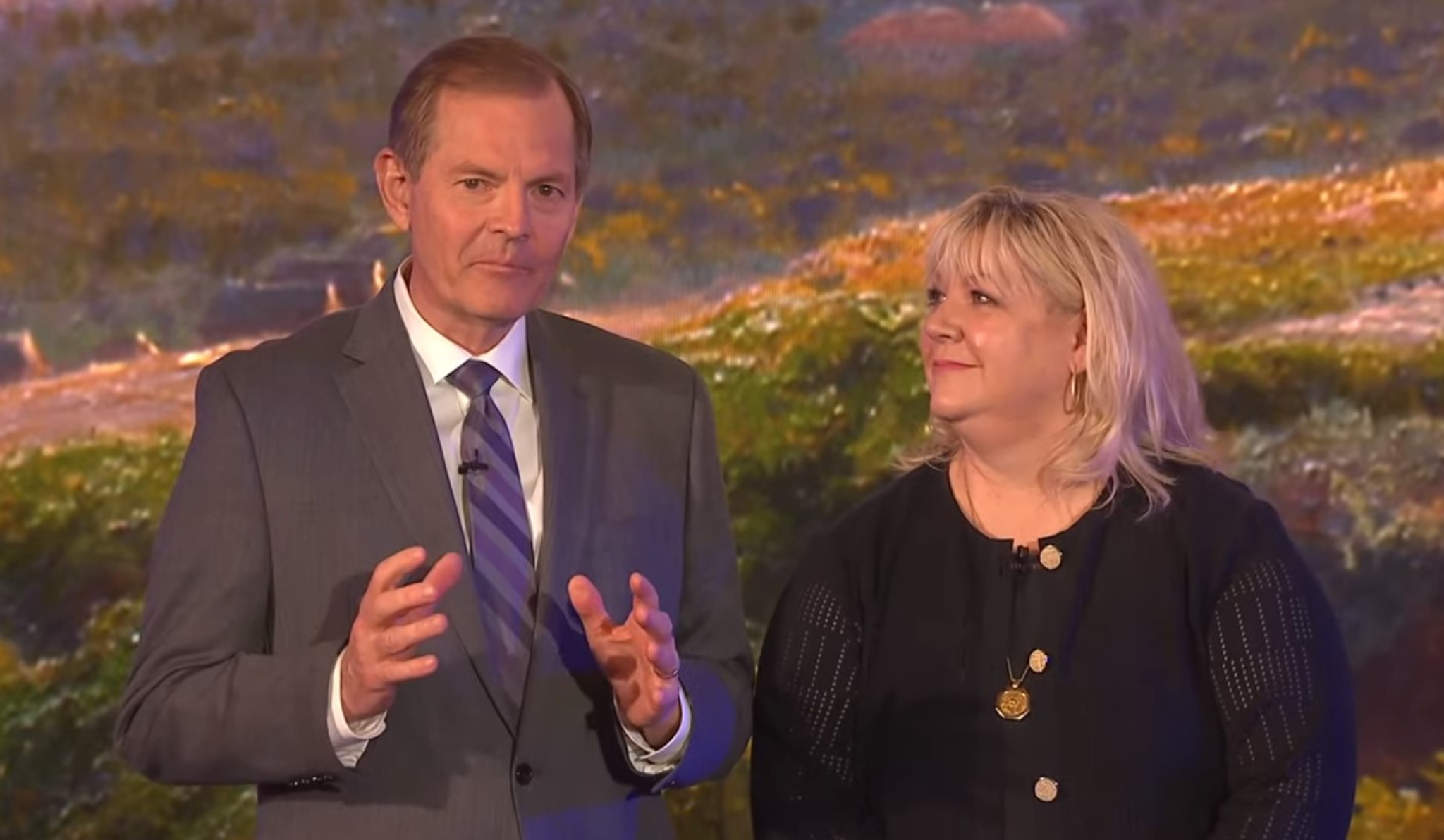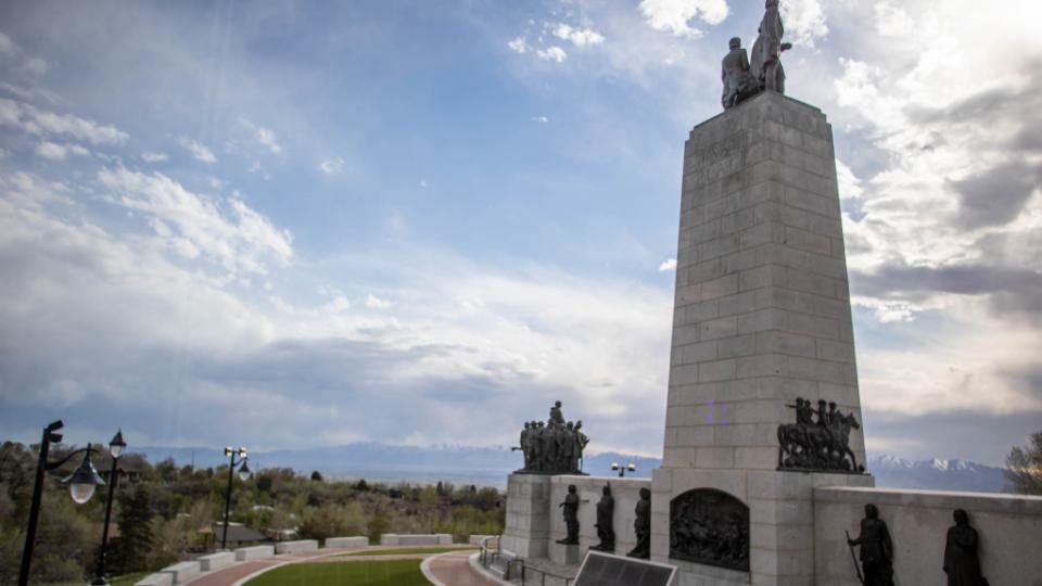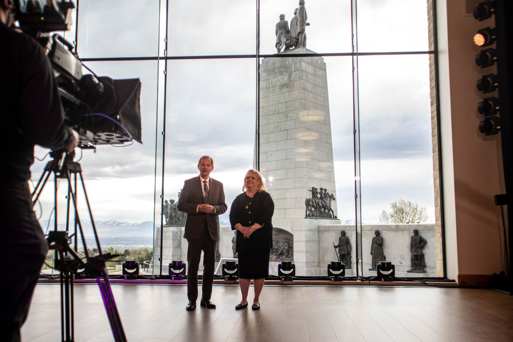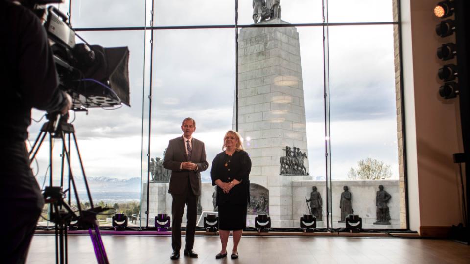 Elder Gary E. Stevenson and his wife, Lesa, spoke from the new Pioneer Center at This Is the Place Heritage Park at the foot of the mountains to the east in Salt Lake City. As they began their message to those ages 18 to 30 from a spot that honors the earliest members of The Church of Jesus Christ of Latter-day Saints, Elder Stevenson turned the sights seen through the vaulted glass that overlooks the park’s central pioneer monument into a metaphor.