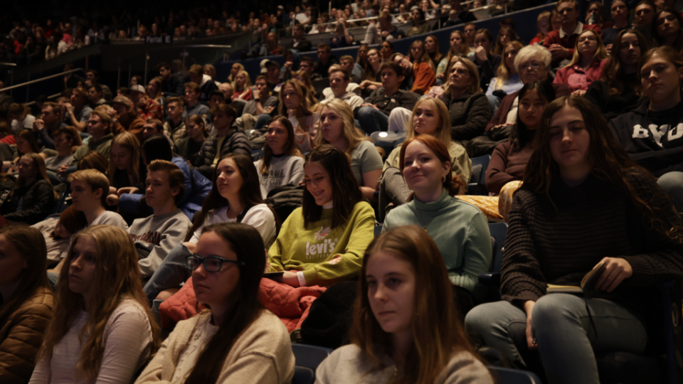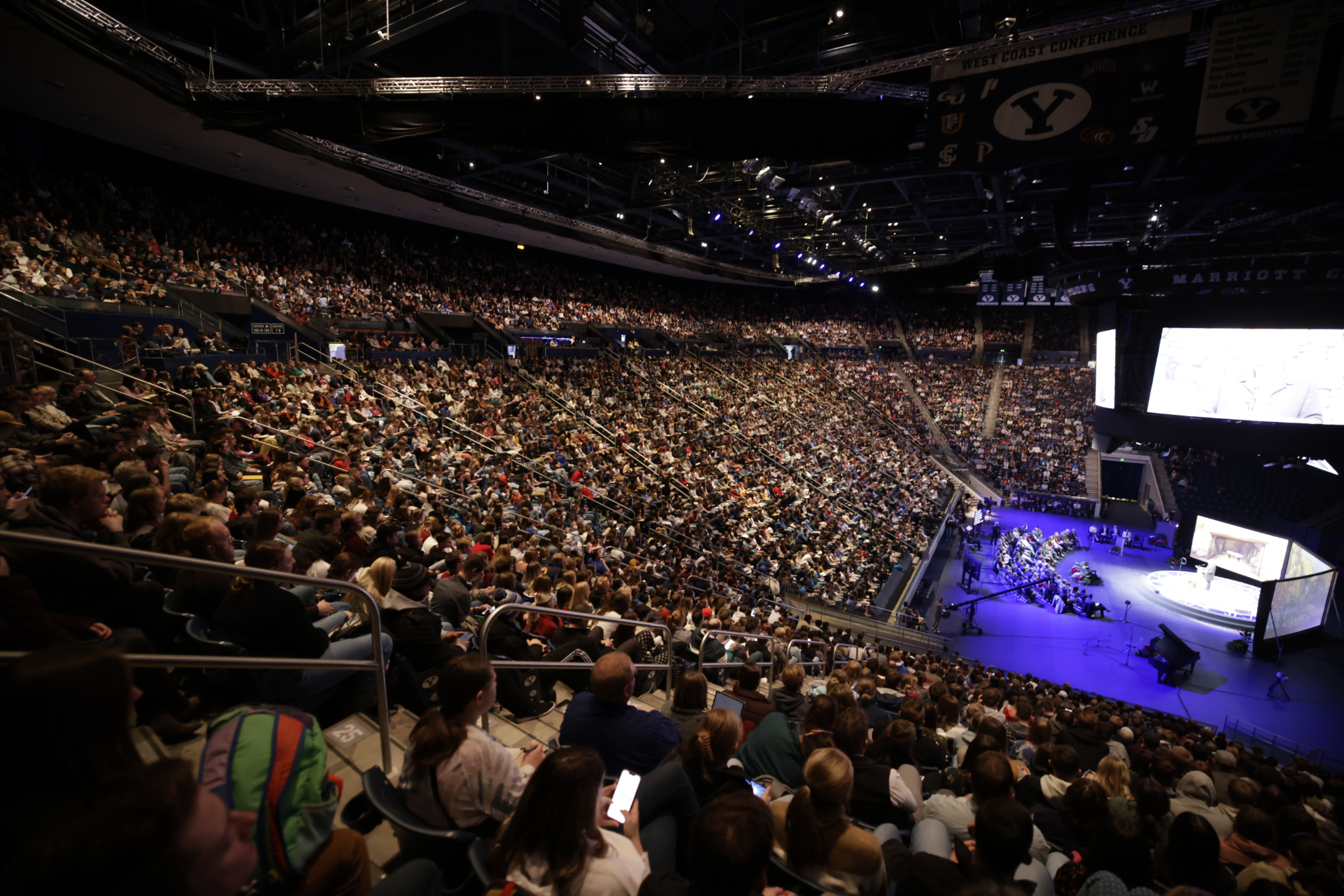 “Our quest in life is to seek for light and truth and to walk with our Savior and receive the magnificent blessing of having Him walk with us, despite the darkness that exists in the world today,” the leader in The Church of Jesus Christ of Latter-day Saints told thousands of assembled students in the Marriott Center in Provo, Utah.