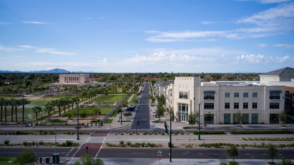 “This landmark in the shadow of our magnificent temple right on Main Street enriches what is the diverse and dynamic downtown Mesa. This beautiful new building will be a point of pride to the city and our church for years to come and serve as a gathering space for those who want to learn more about Jesus Christ and discover their family history,” said Julie Spilsbury, a member of the Mesa City Council and a Latter-day Saint.