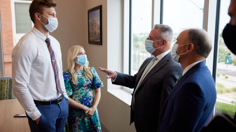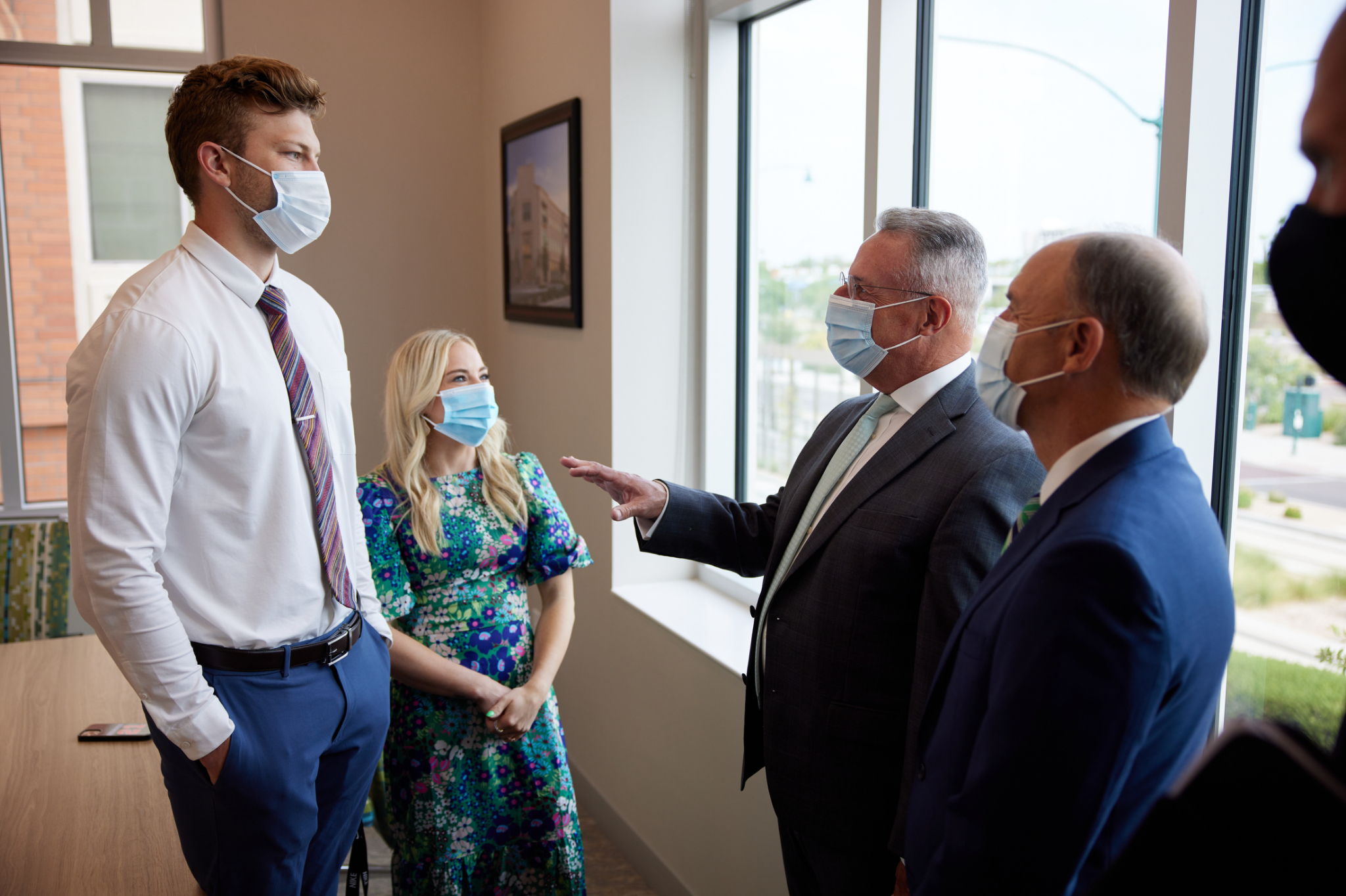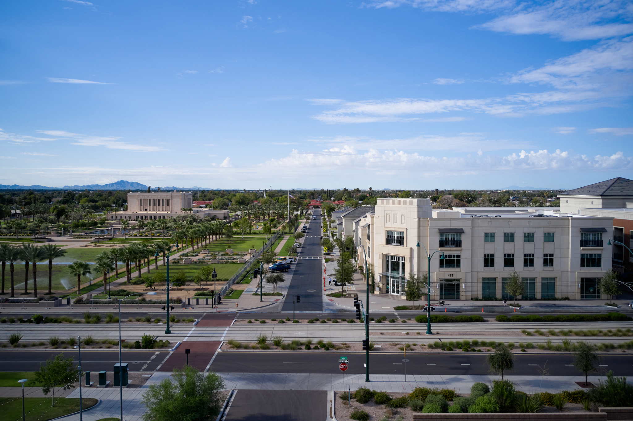 The new visitors’ center is located on the southwest corner of LeSueur and Main Street, across the street from the temple grounds. The building is part of the Church’s efforts to redevelop 4.5 acres of land along the Main Street light rail corridor in Mesa.
