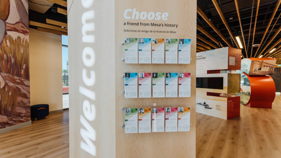 Guests of all faiths are invited to select one of several Mesa Friends from Mesa’s early days to learn about the city’s diverse history and spiritual heritage built by Native Americans, Hispanic migrants and Mormon pioneers. After learning about Mesa’s history, visitors may want to learn more about their own family heritage. Kiosks, computers and trained volunteers are available to help community members see if they are connected to some of Mesa’s early residents, discover their family tree and record their own stories.