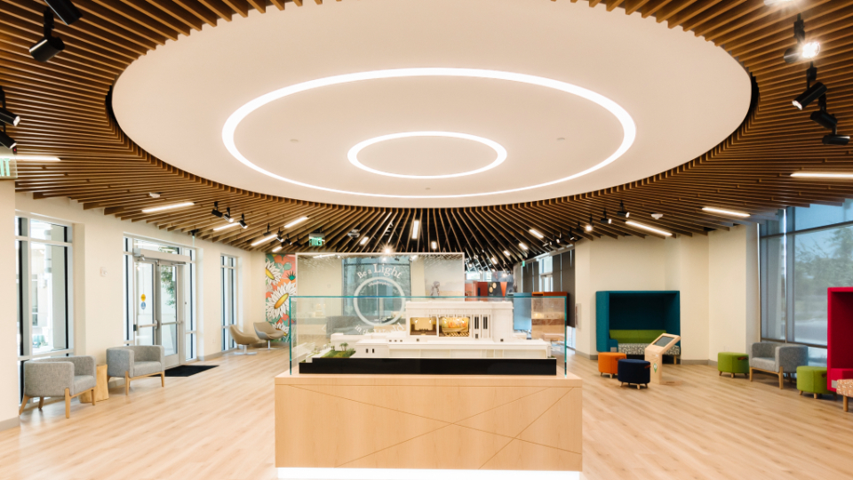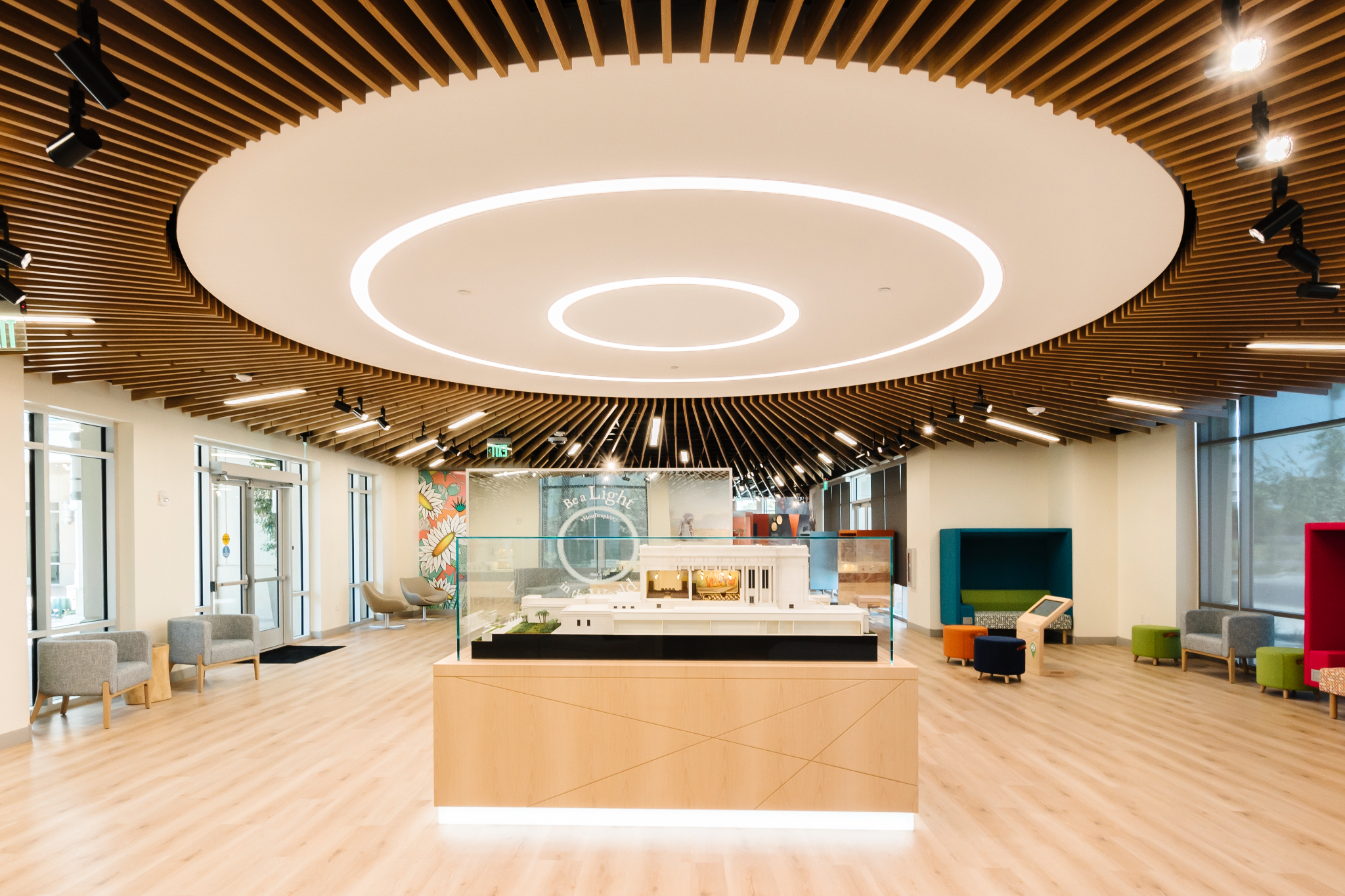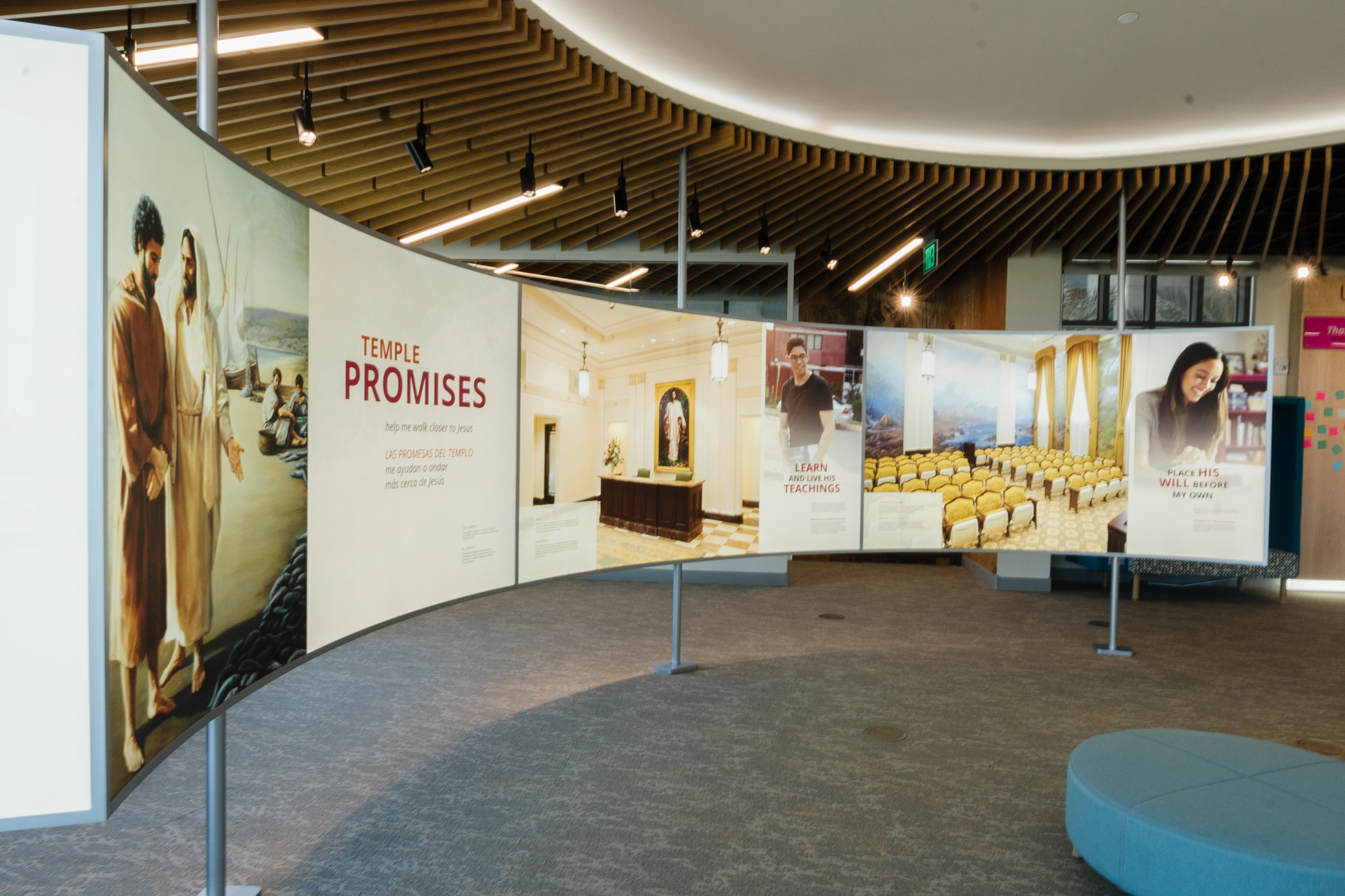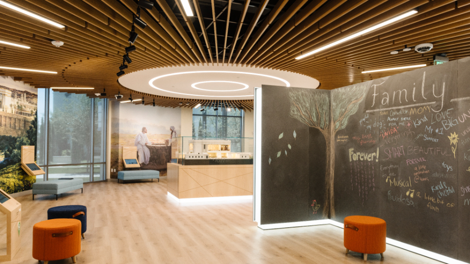 “We spent time with young adults in Mesa to learn how to create a space that works for them,” explained Tanner Kay, the product manager and experience creator for the visitors’ center. “That’s why you see a variety of comfortable spaces here, like a kitchen to share food with friends, and individual quiet pods where you can have a private moment to meditate."