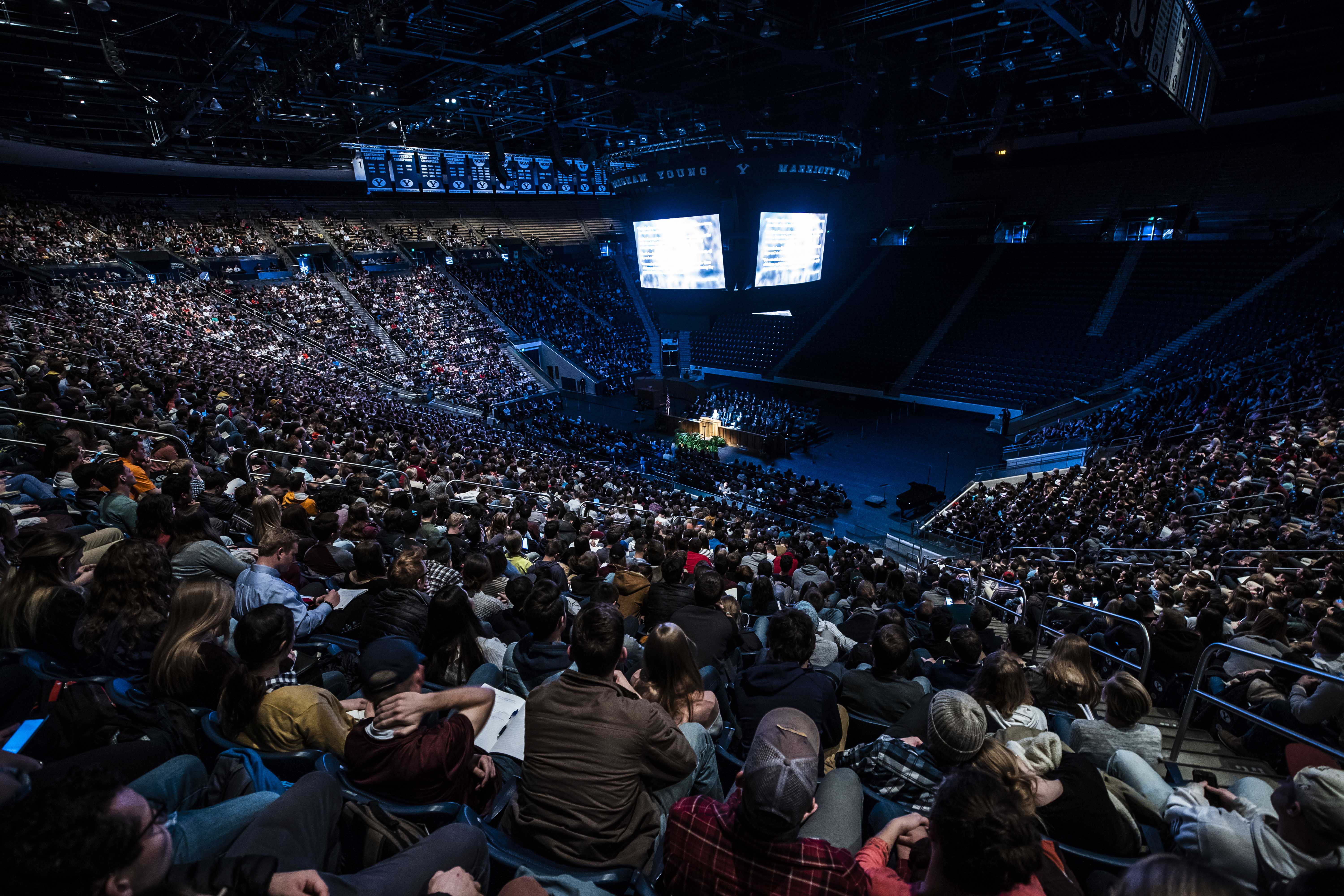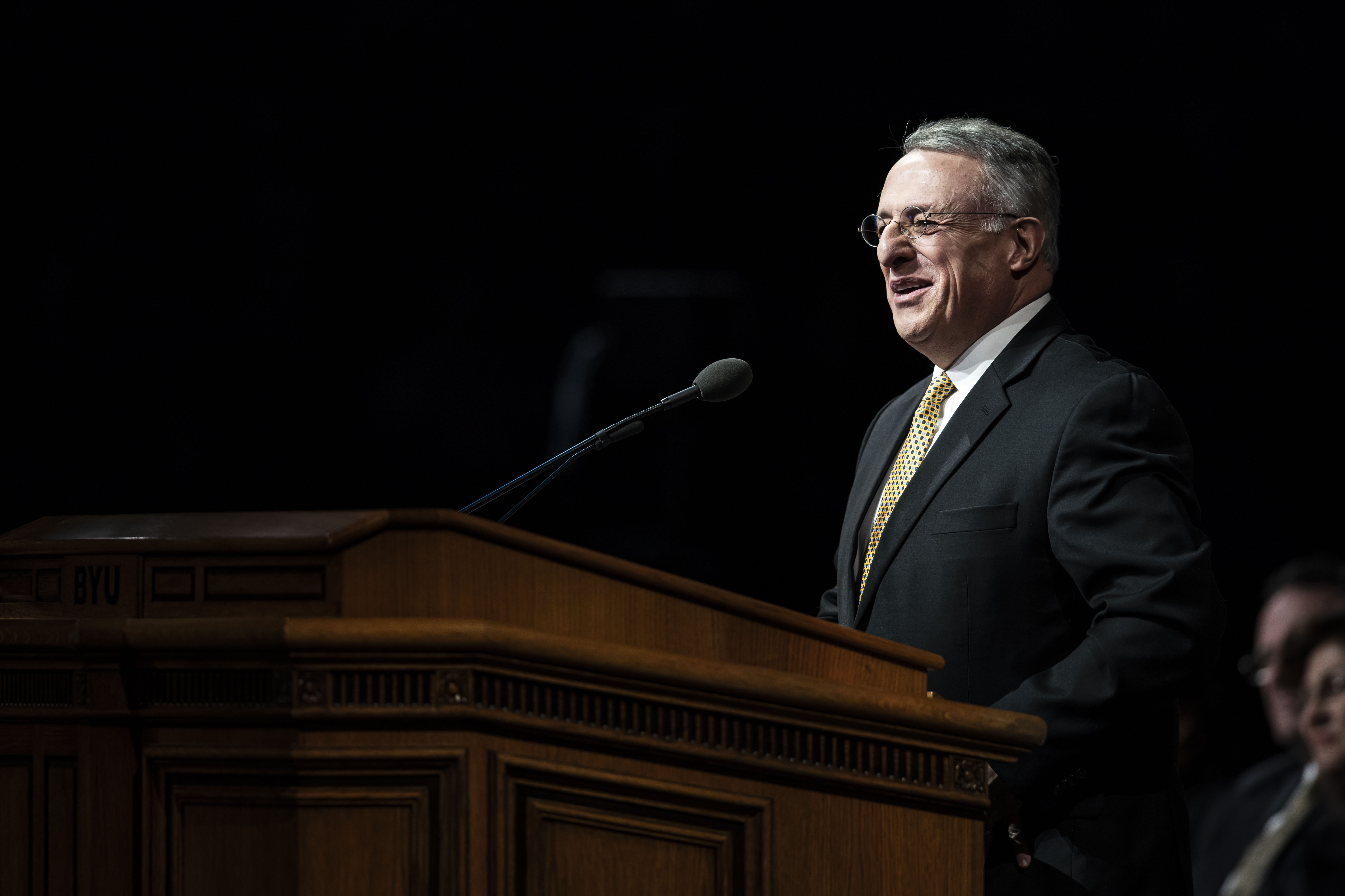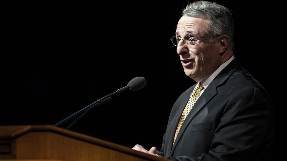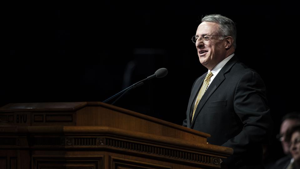 “We have seen steadily declining moral values that have dramatically changed the world through the years,” the Latter-day Saint apostle told faculty and students gathered at the Marriott Center. “Modern communication has drawn people into the world and its values, and secularism has changed the way people see God’s hand in their lives.”