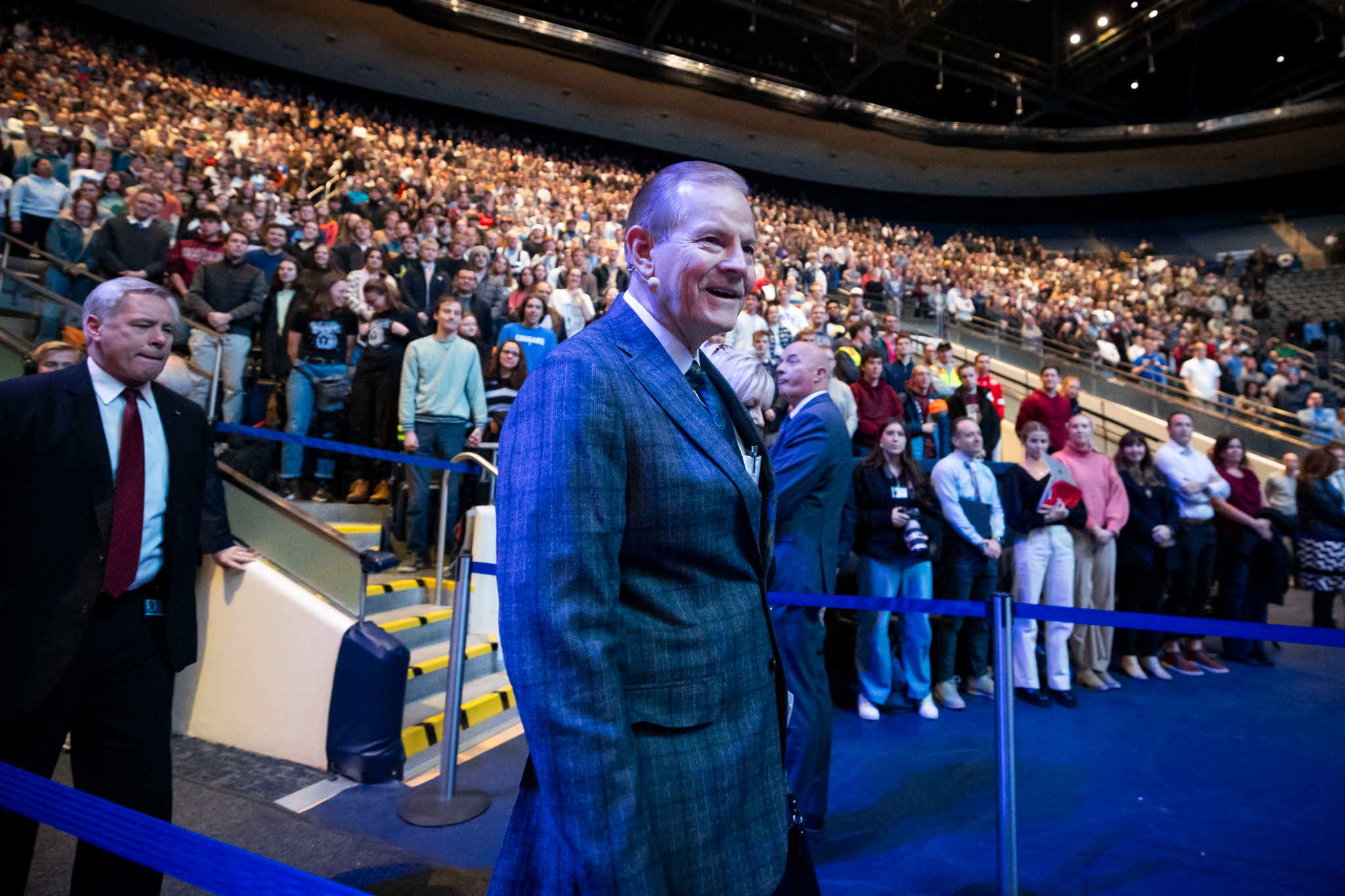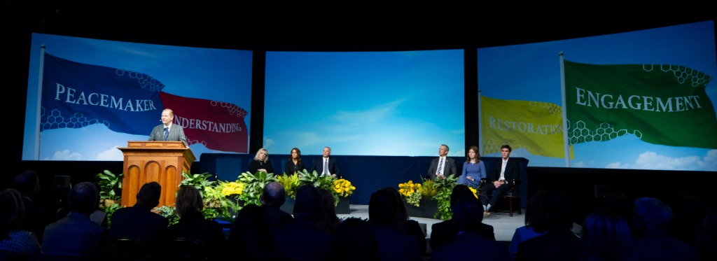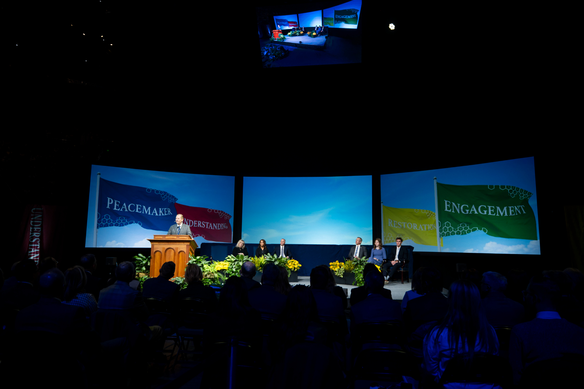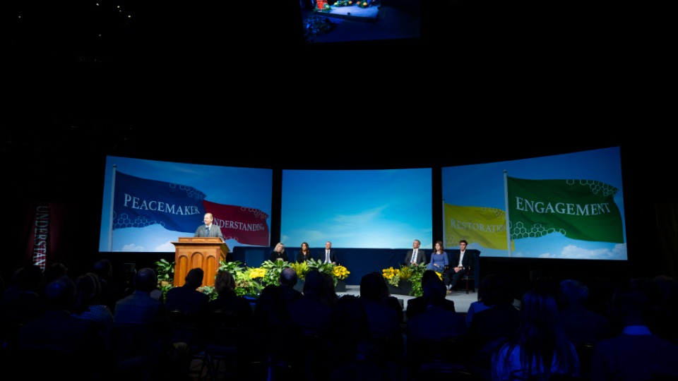 Elder Stevenson quoted President Russell M. Nelson’s call for peacemakers and shared insights from the Rev. Dr. Martin Luther King Jr.’s interpretation of the parable of the Good Samaritan. He encouraged students to elevate their flag of peacemaker by considering the needs of others and fostering civil discourse.