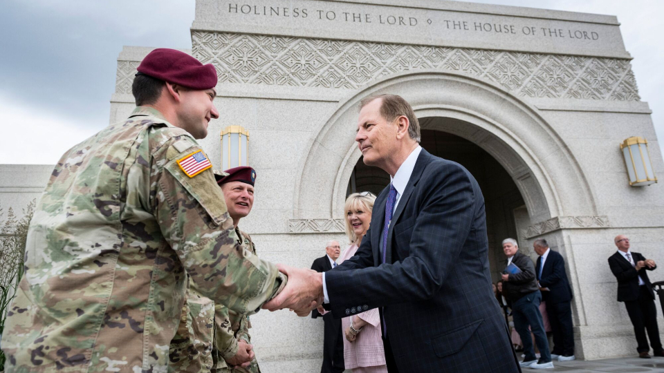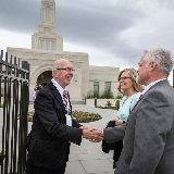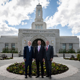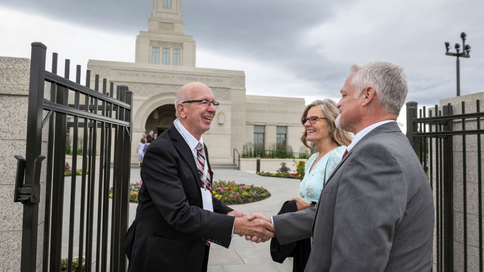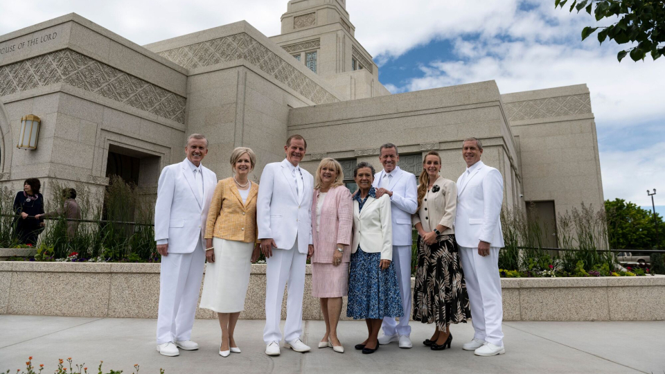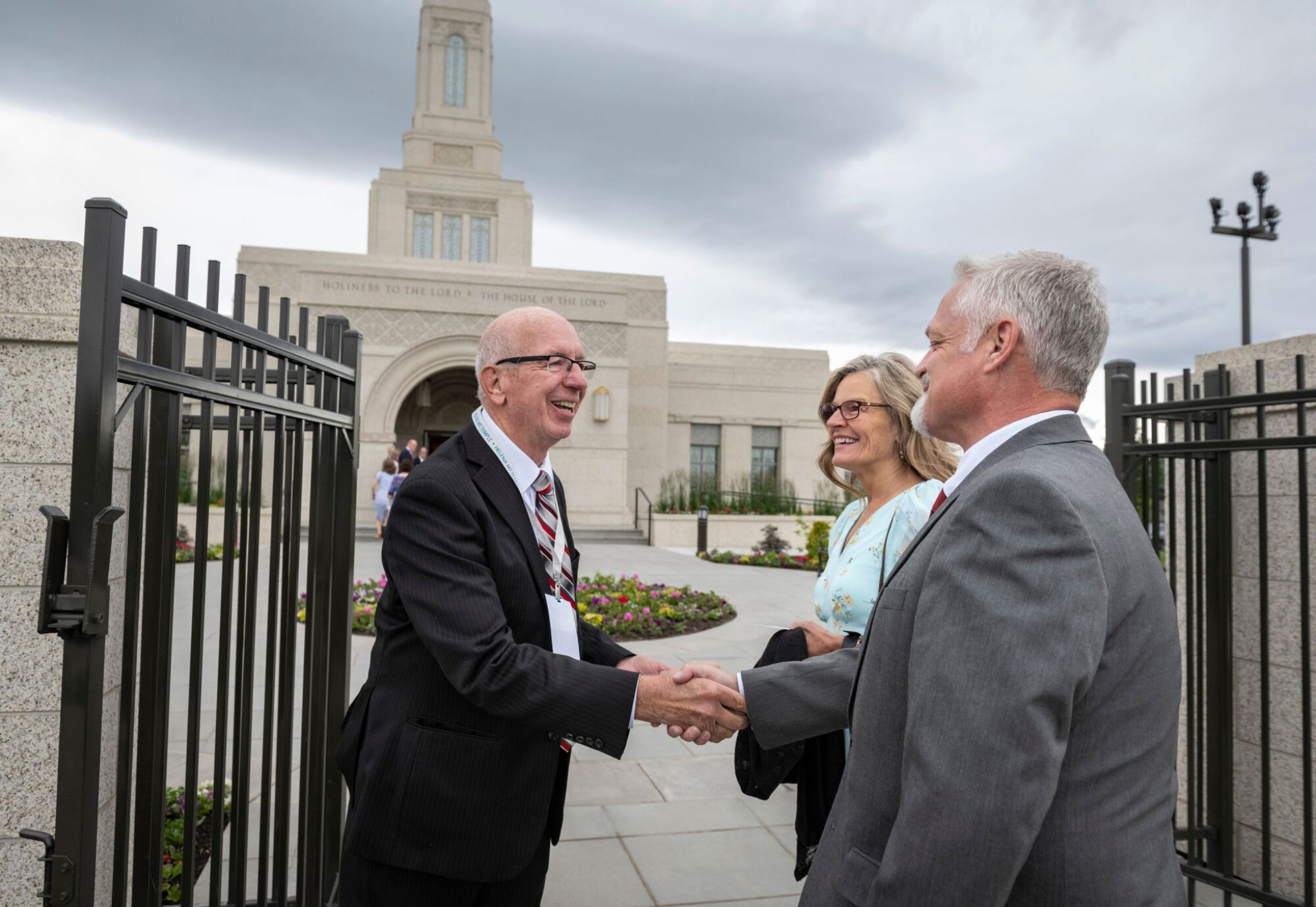 Joining Elder Stevenson for the dedication services were his wife, Sister Lesa Stevenson; Elder Kevin R. Duncan, a General Authority Seventy and executive director of the Temple Department, and his wife, Sister Nancy Duncan; Elder Randall K. Bennett, a General Authority Seventy and counselor in the North America Central Area presidency; and Michael Suhaka, managing director of the Temple Department.
