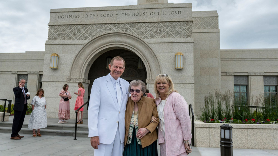 Sister Stevenson said attending a temple dedication is always a blessing, but one close to home is an added joy, especially when the Stevensons cross paths with longtime acquaintances like 94-year-old Elsie Gruel of Great Falls. She first became acquainted with Elder Stevenson a number of years ago when he visited during a Montana fishing trip and accompanied her to a horse sale.