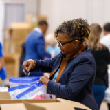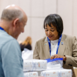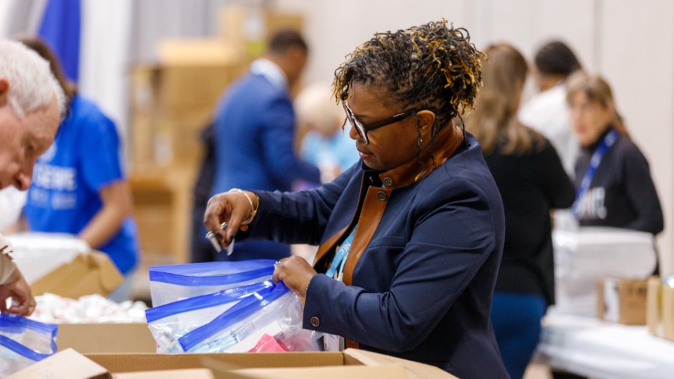 South Jordan Mayor Dawn Ramsey (right) and other members of the National League of Cities participate in a JustServe-sponsored service project in the Salt Palace Convention Center in Salt Lake City, Utah, on Thursday, November 20, 2025. They are assembling hygiene kits that will benefit adults and babies at the Crossroads Urban Center, which serves Utahns with low incomes, people with disabilities and communities of color.© 2025 by Intellectual Reserve, Inc. All rights reserved.In 2023, South Jordan was named a JustServe Global City.