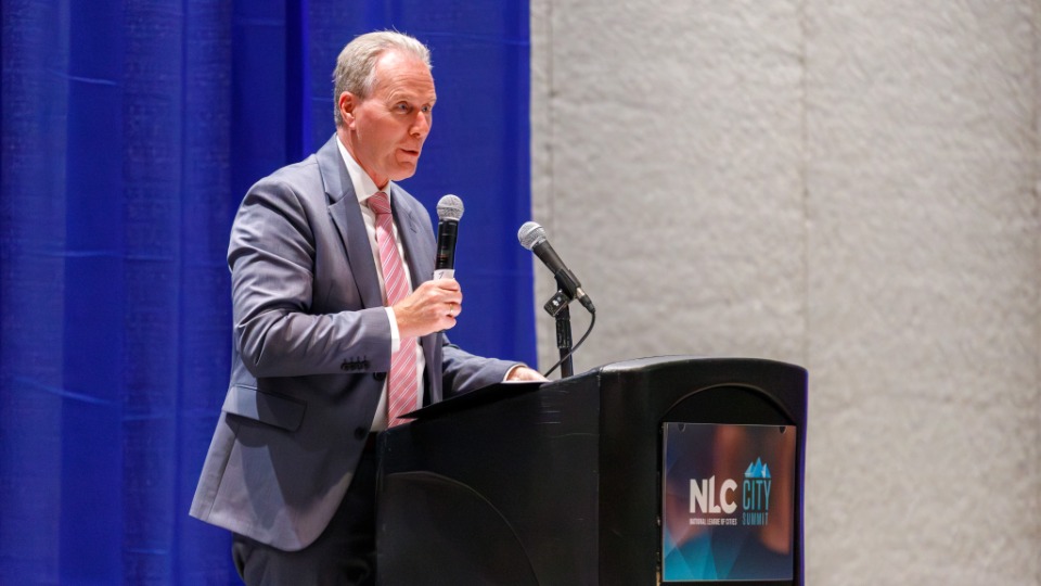 Elder Gary E. Stevenson of the Quorum of the Twelve Apostles speaks Wednesday, November 19, 2025, to members of the National League of Cities gathered in the Salt Palace Convention Center in Salt Lake City, Utah.© 2025 by Intellectual Reserve, Inc. All rights reserved.“It’s part of society’s ethos that comes from the Judeo-Christian tradition that is the backbone of so much of what is taking place in society today that is good,” Elder Stevenson said.