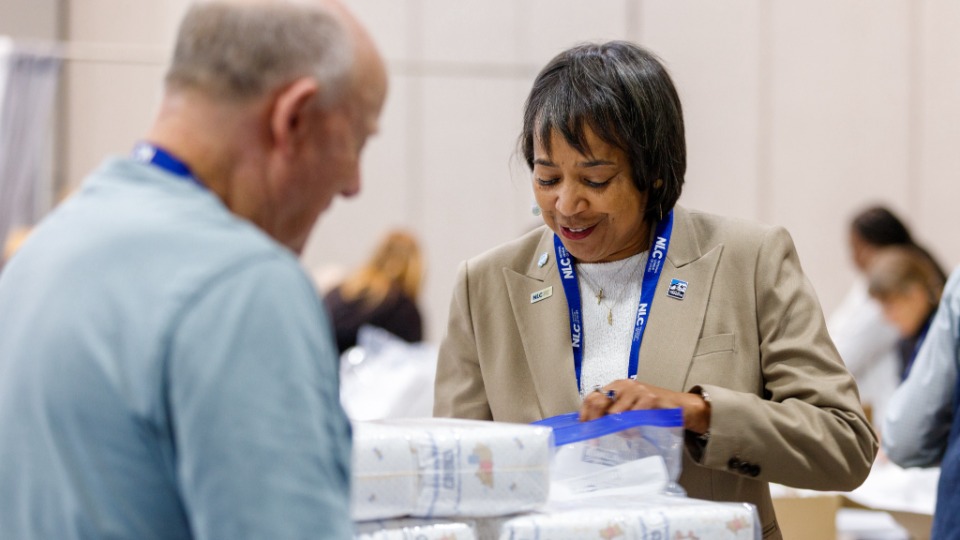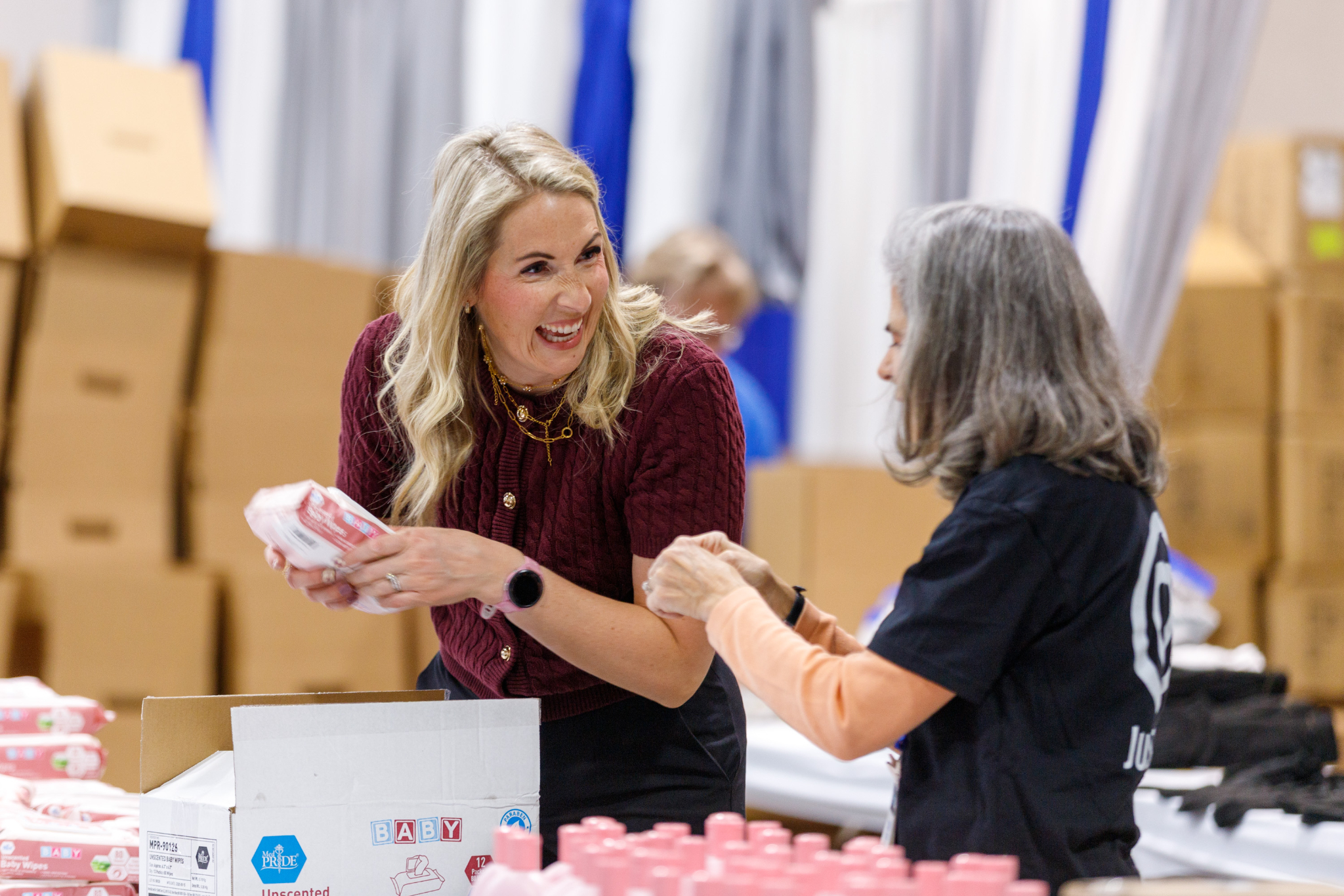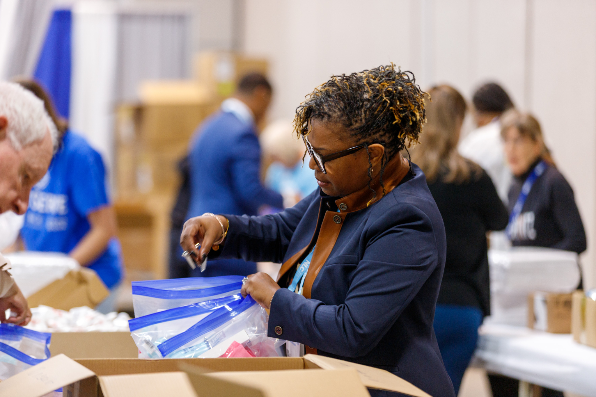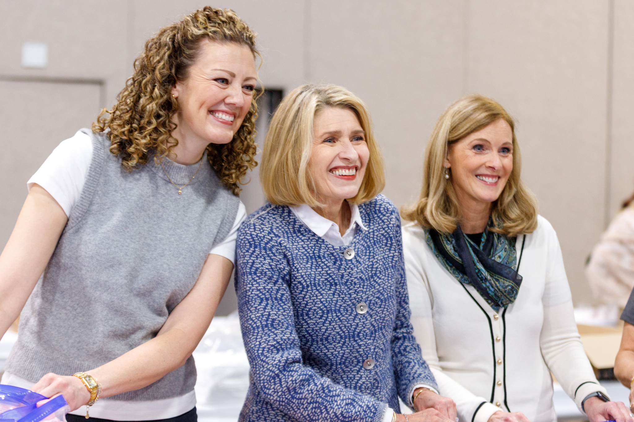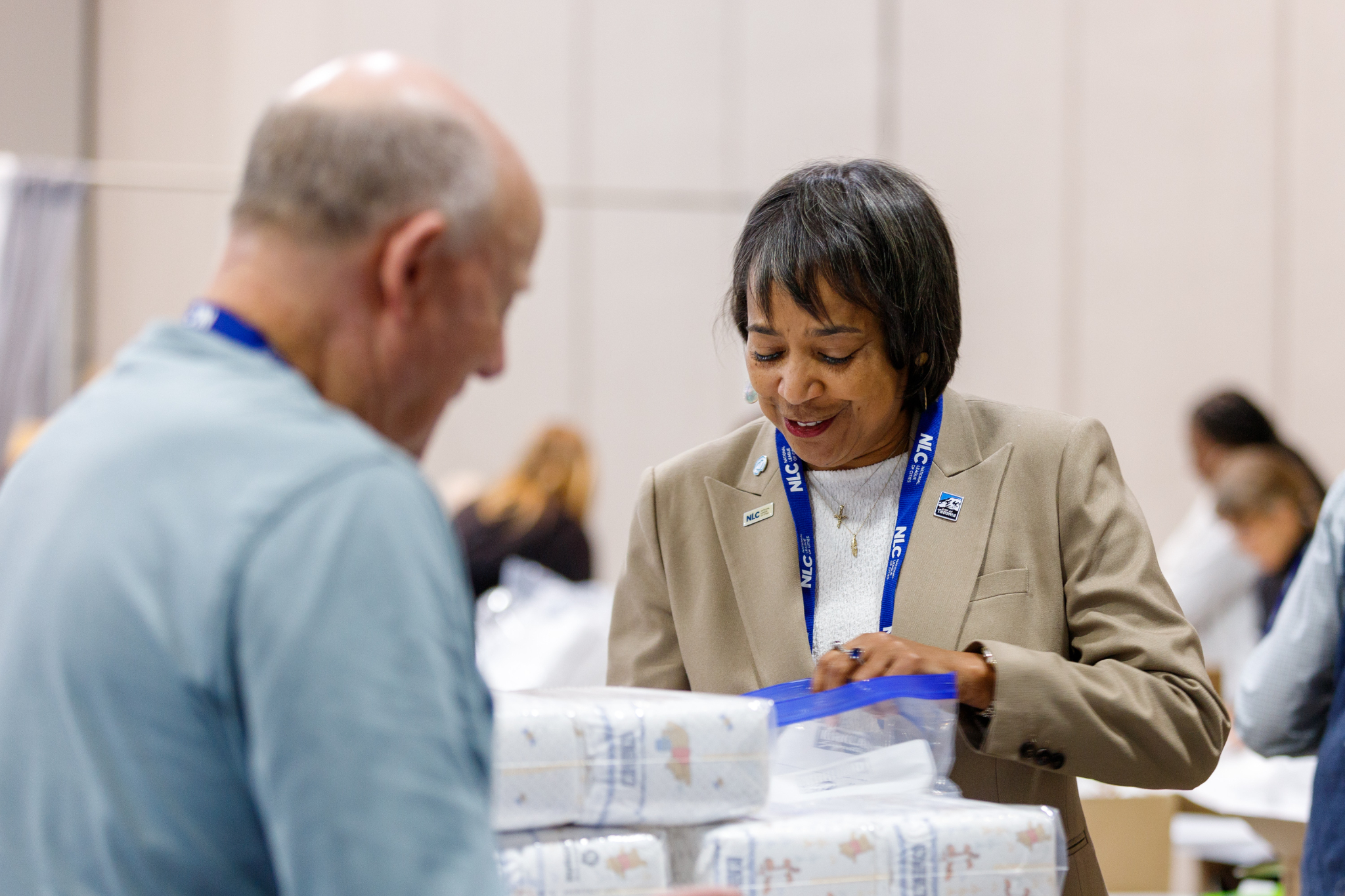 Another opportunity for NLC members to forge friendships came Thursday morning during a JustServe-sponsored service project. The Church’s Relief Society General Presidency joined NLC members in assembling hygiene kits that will benefit adults and babies at the Crossroads Urban Center, which serves Utahns with low incomes, people with disabilities and communities of color.