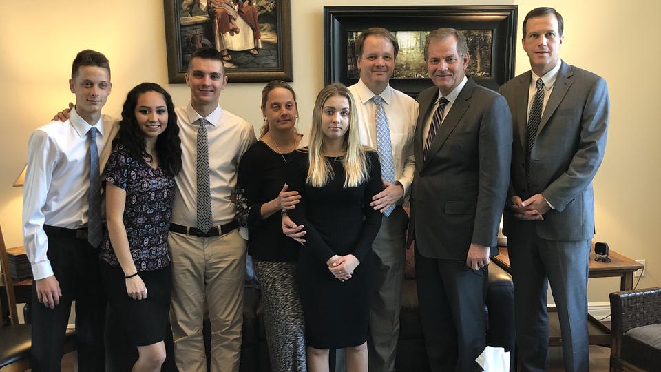 On February 16, as Elder Gary E. Stevenson of the Quorum of the Twelve Apostles and General Authority Seventy Jörg Klebingat visited the home of Latter-day Saints Ryan and Kelly Petty, they pointed the family to the comforting Christian doctrines of God’s omniscience and the reality of life and joy in the world to come. The Petty’s youngest daughter, Alaina, was fatally wounded in the February 14 shooting at Marjory Stoneman Douglas High School in Parkland, Florida.