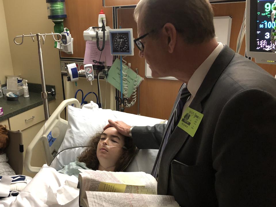 Prior to visiting the Pettys, Elder Stevenson and Elder Klebingat ministered to Latter-day Saint Madeleine (Maddy) Wilford and her family in the intensive care unit of the Broward County North Hospital. Maddy was shot twice — one bullet to a shoulder and another to her back — and underwent three surgeries. Miraculously, she was released from the hospital February 21.
