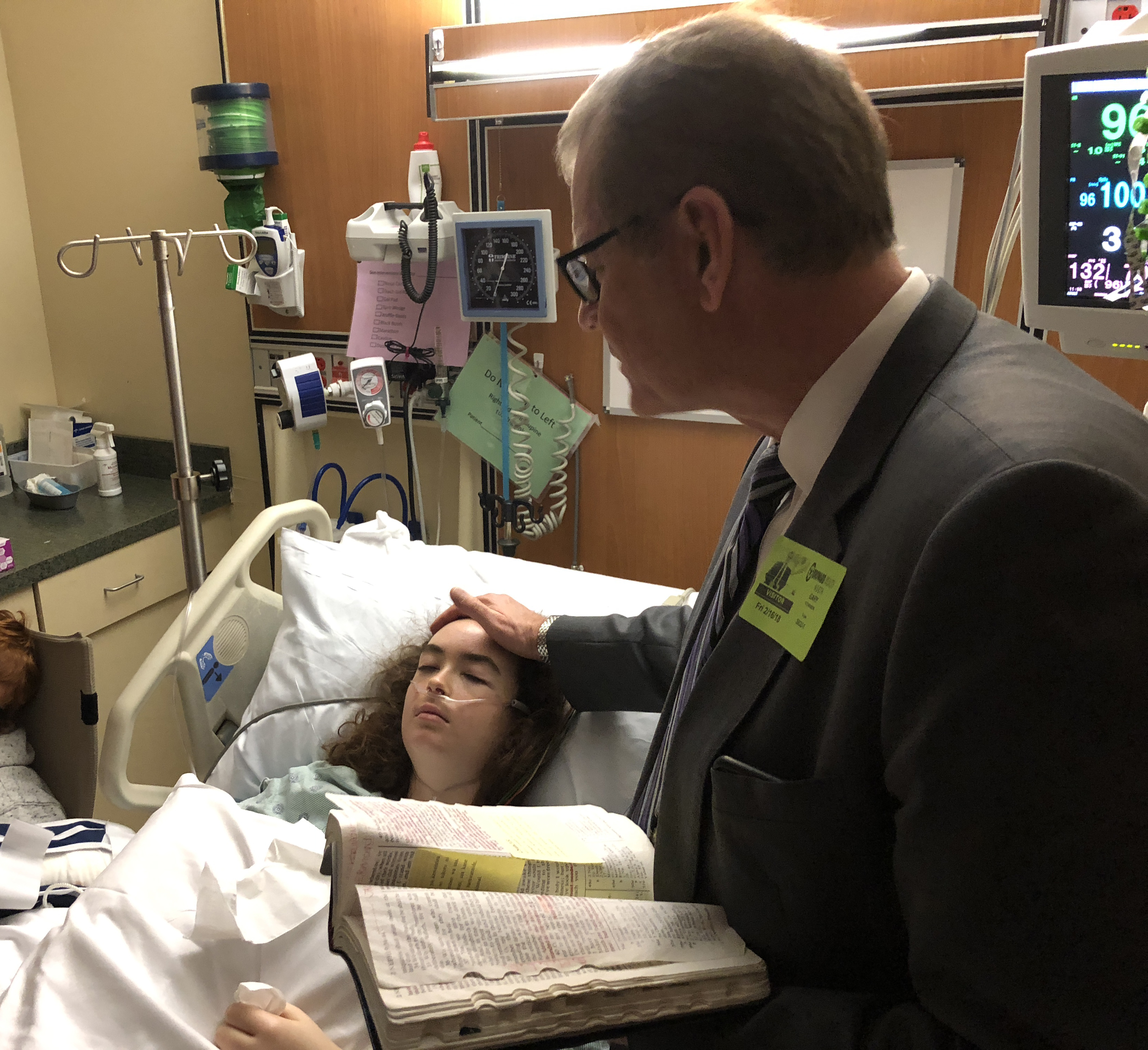 Prior to that blessing, Maddy and David said Elder Stevenson opened his Book of Mormon and read from 2 Nephi 2:2, which teaches that God “shall consecrate [our] afflictions for [our] gain.” God has a purpose for Maddy and she will grow spiritually from this, they said Elder Stevenson told them.