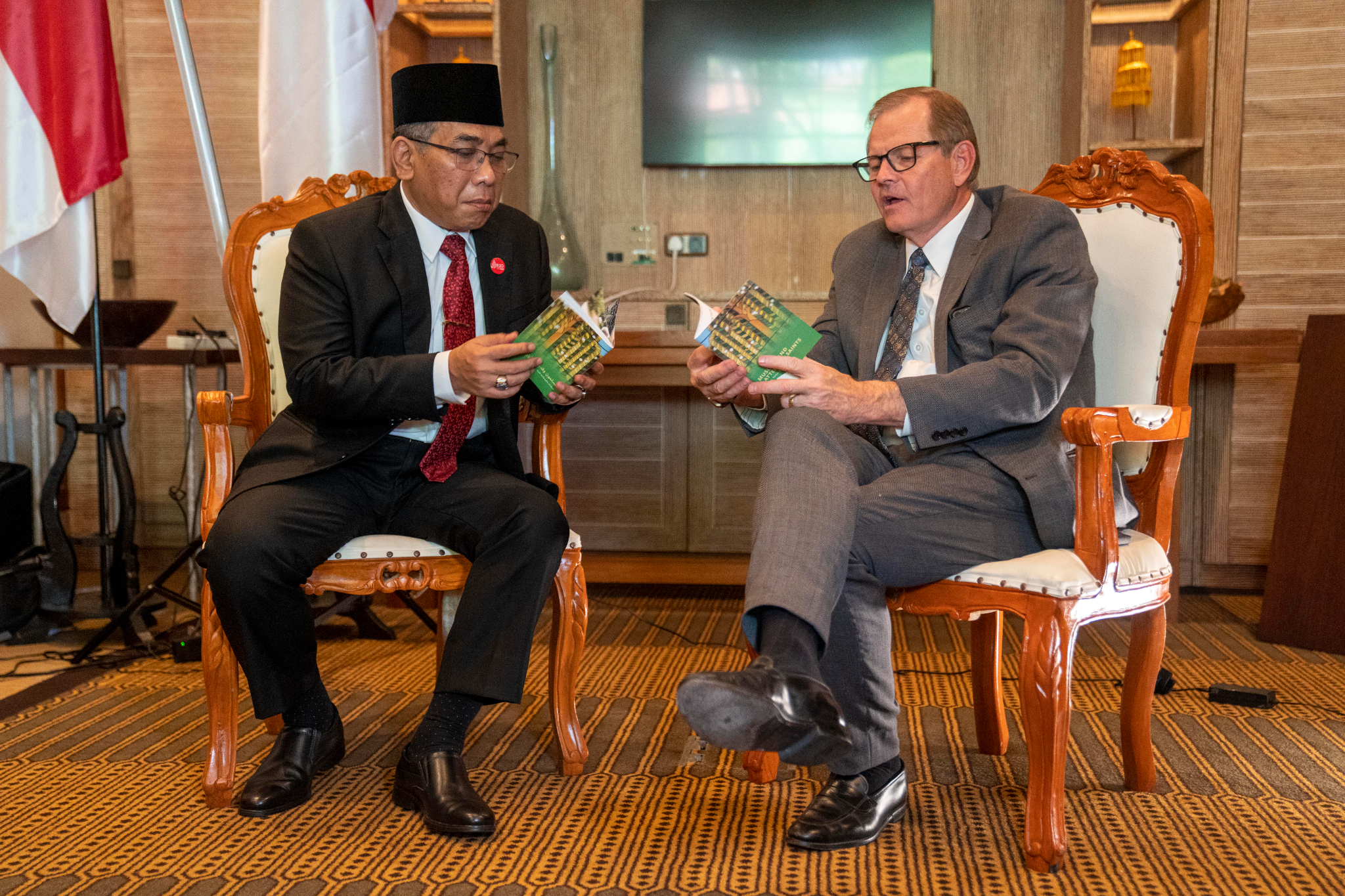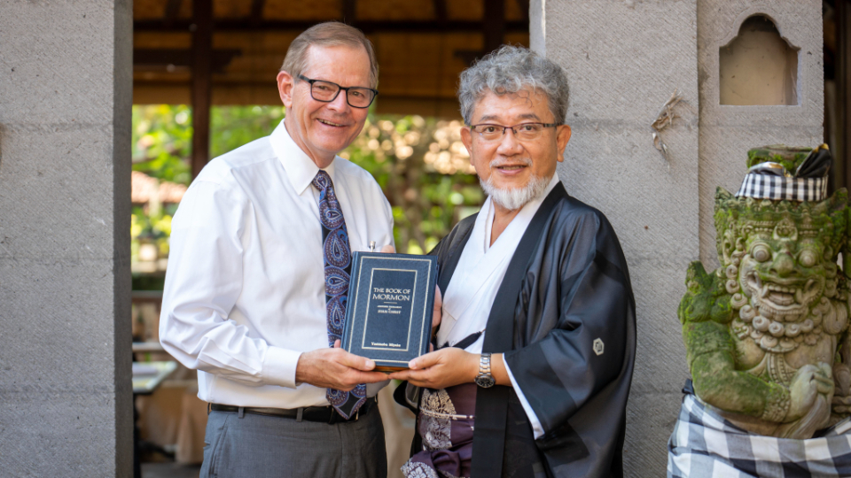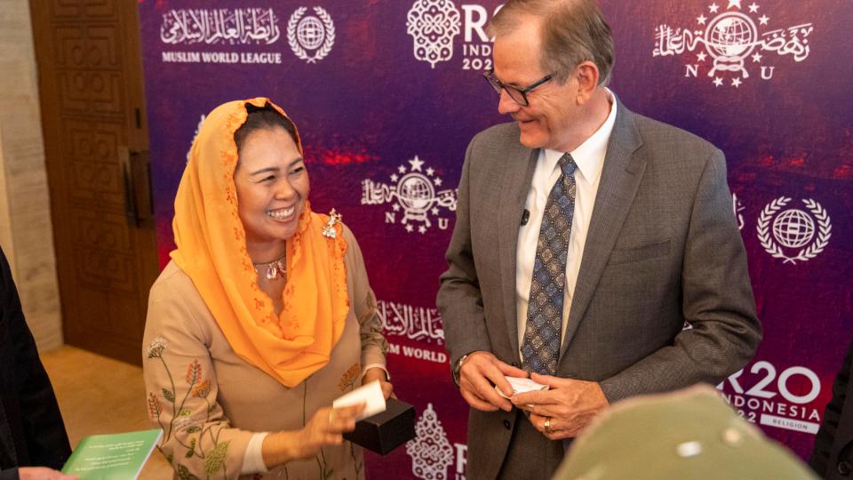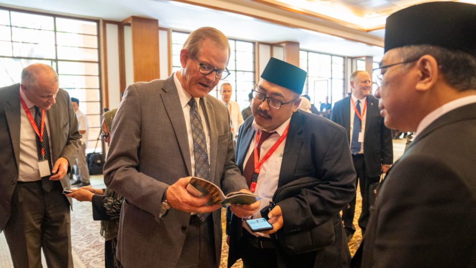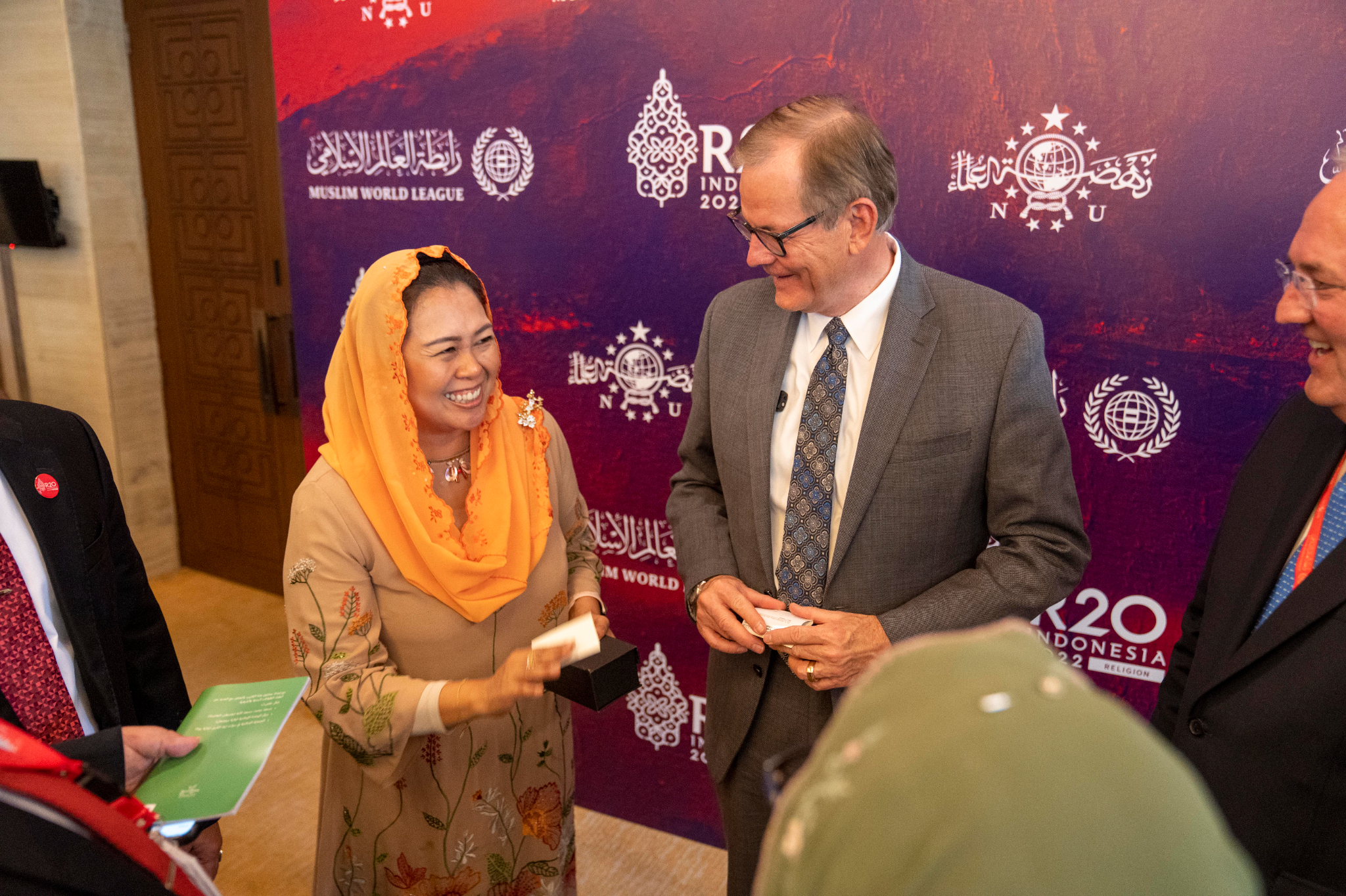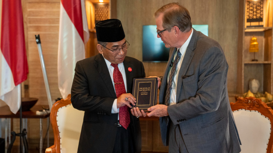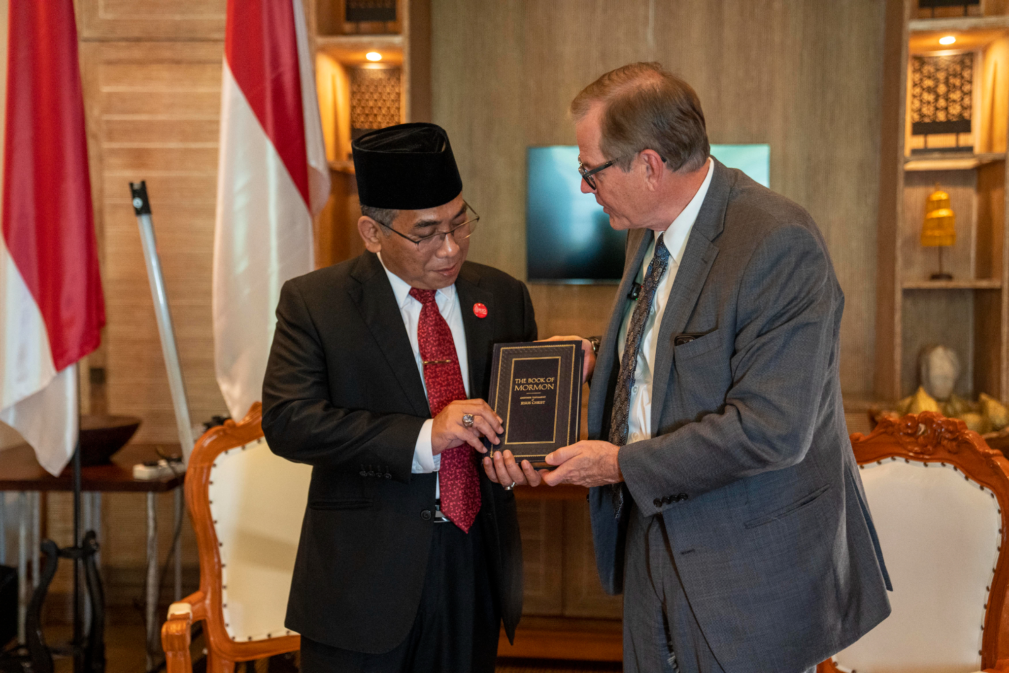 Elder Gary E. Stevenson of the Quorum of the Twelve Apostles shares the pamphlet “Muslims and Latter-day Saints: Beliefs, Values, and Lifestyles,” with Kyai Haji Yahya Cholil Staquf, general chairman of Nahdlatul Ulama Central Board, at the G20 Religion Forum in Bali, Indonesia, on Wednesday, November 2, 2022.2022 by Intellectual Reserve, Inc. All rights reserved.In Indonesia, where Elder Stevenson spoke, the Church has several humanitarian projects in the works. These include efforts to bring clean water to eight villages, equip 10 health care facilities with neonatal resuscitation equipment and training, and improve a school and medical clinic for the underprivileged in Yayasan Cahaya Hati.