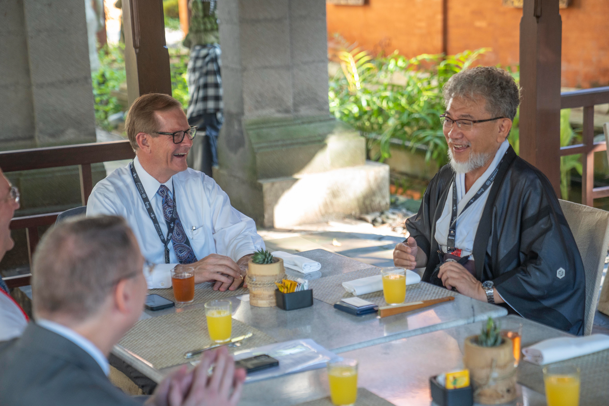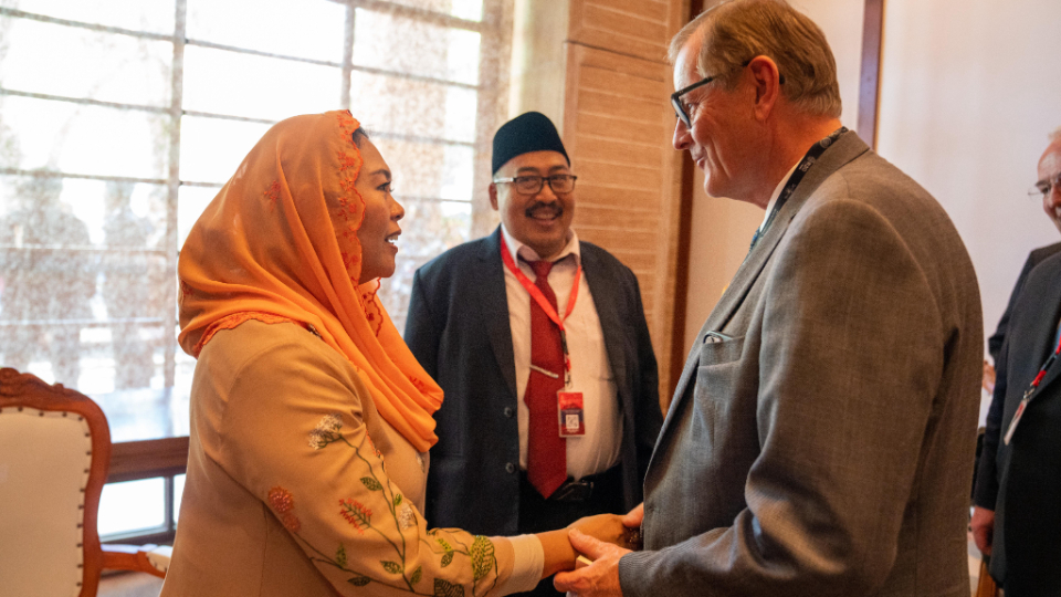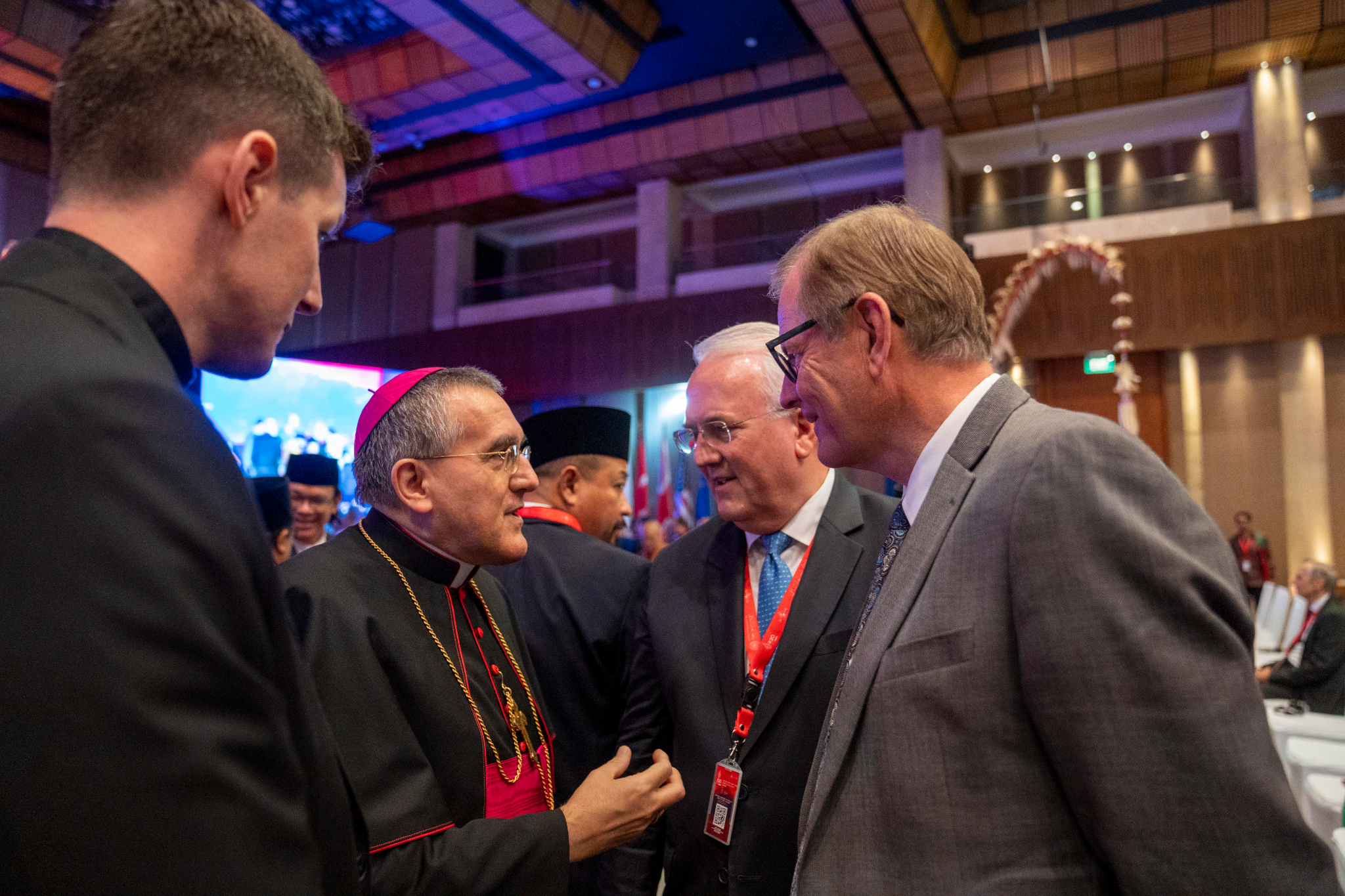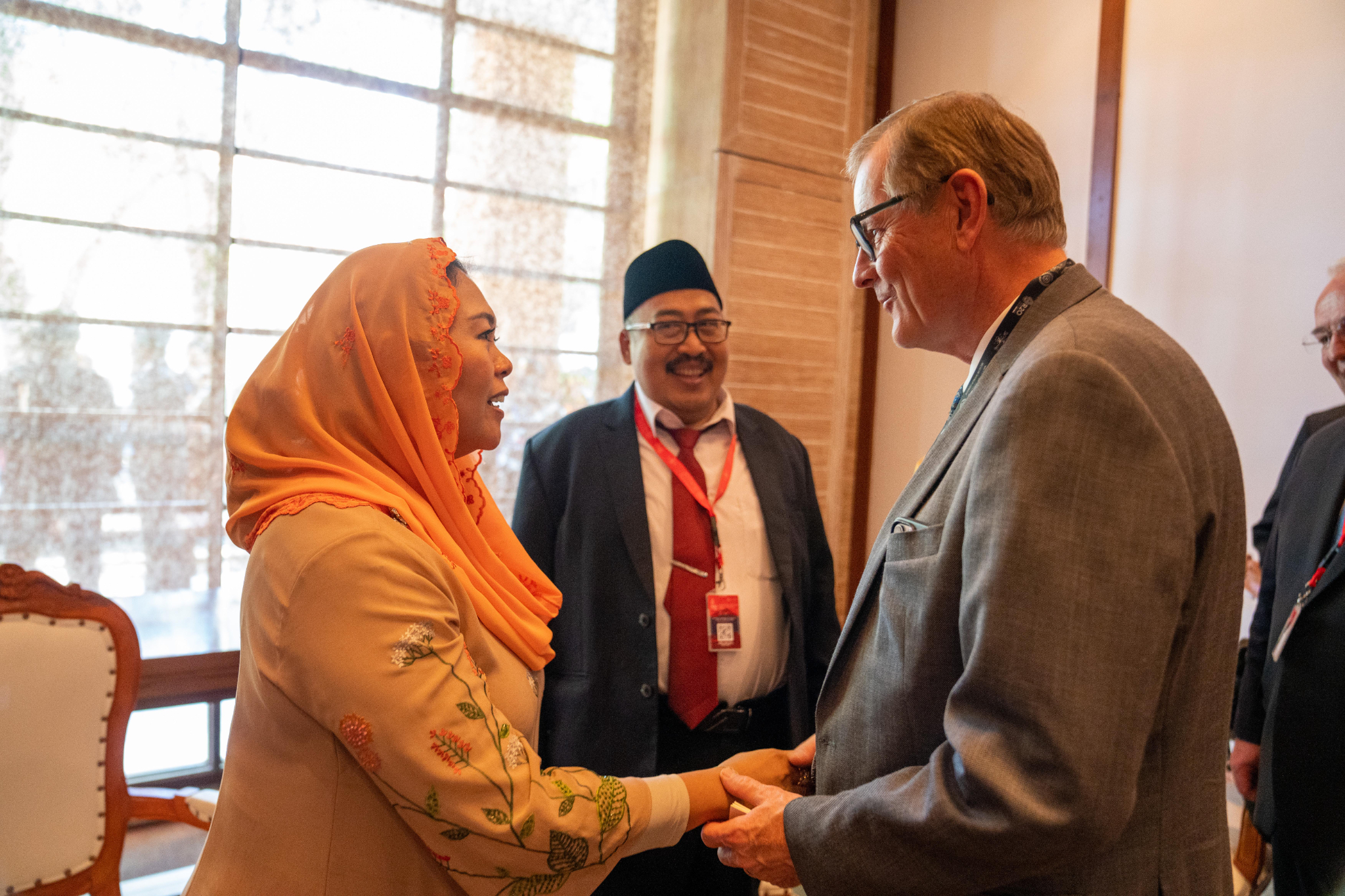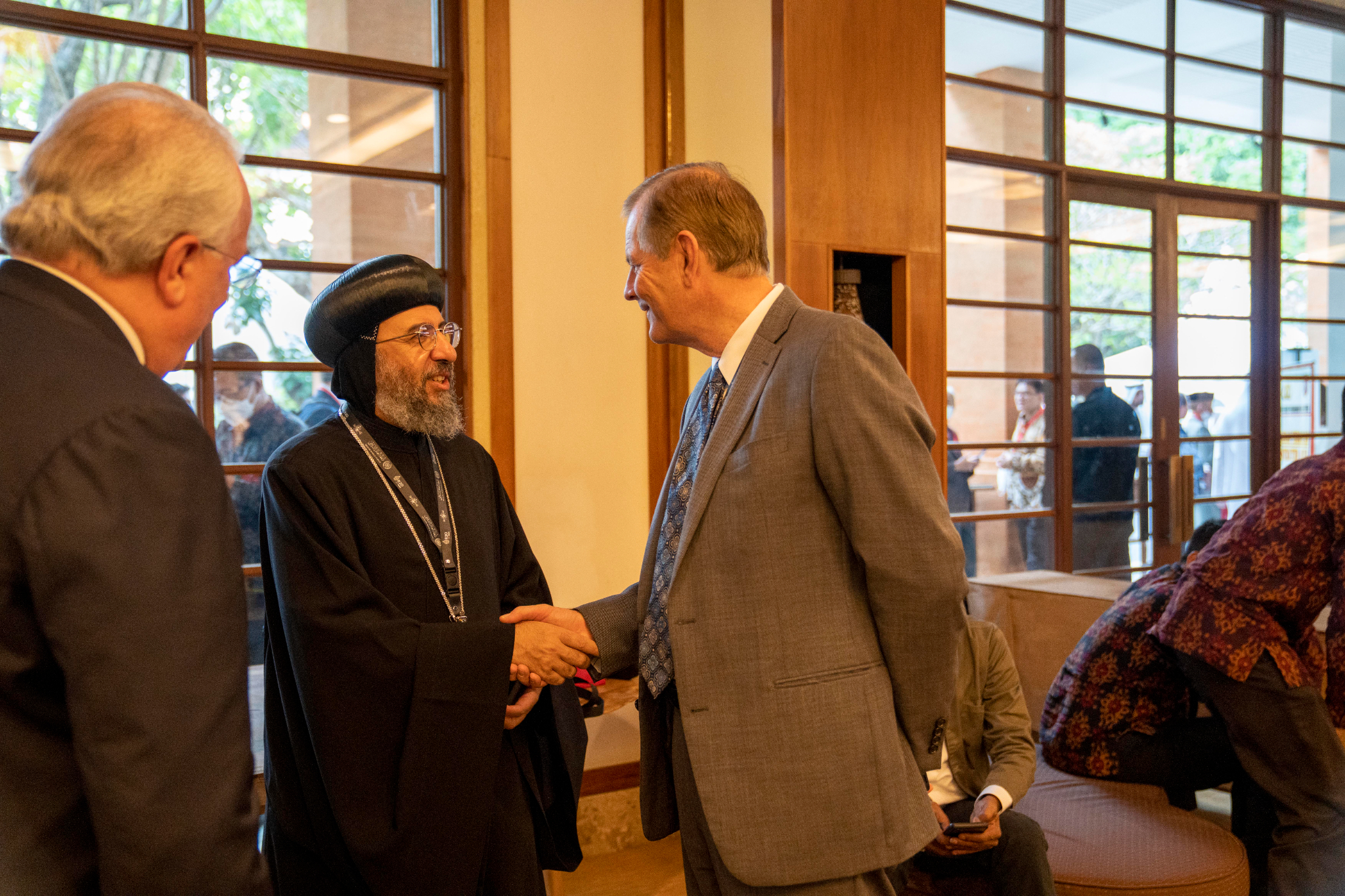 Elder Gary E. Stevenson of the Quorum of the Twelve Apostles shares the pamphlet “Muslims and Latter-day Saints: Beliefs, Values, and Lifestyles,” with Kyai Haji Yahya Cholil Staquf, general chairman of Nahdlatul Ulama Central Board, at the G20 Religion Forum in Bali, Indonesia, on Wednesday, November 2, 2022.2022 by Intellectual Reserve, Inc. All rights reserved.In Indonesia, where Elder Stevenson spoke, the Church has several humanitarian projects in the works. These include efforts to bring clean water to eight villages, equip 10 health care facilities with neonatal resuscitation equipment and training, and improve a school and medical clinic for the underprivileged in Yayasan Cahaya Hati.