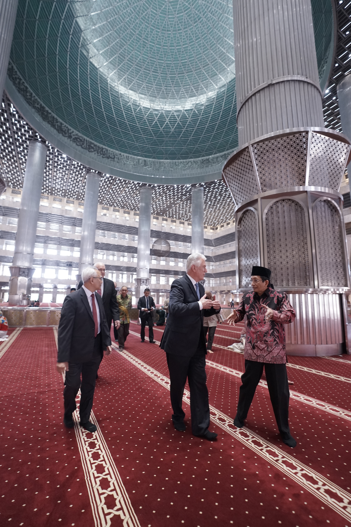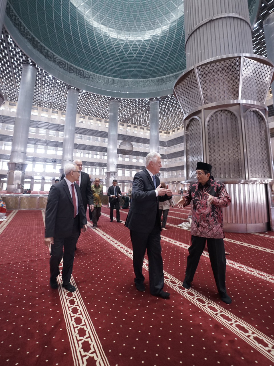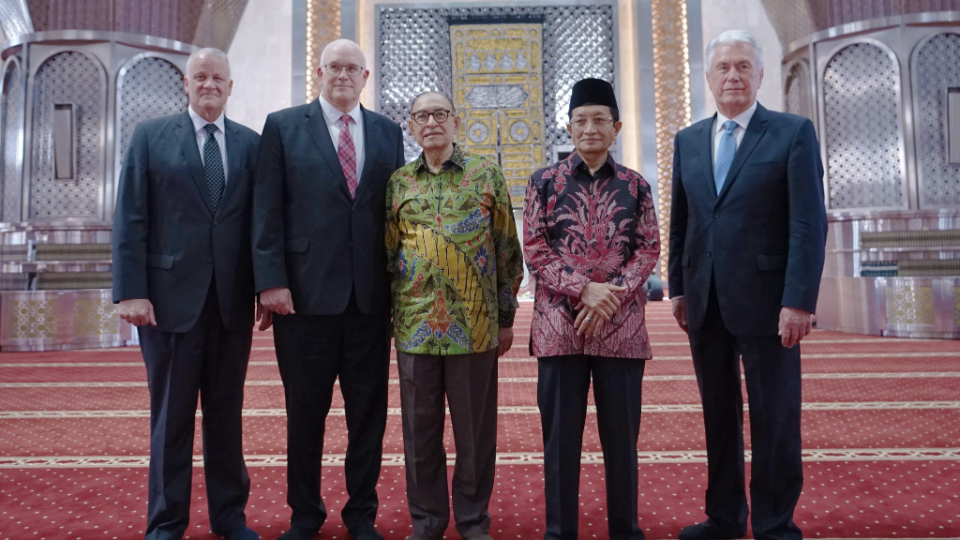 The Istiqlal Mosque in Jakarta, Indonesia, is the largest mosque in Southeast Asia and home to hundreds of thousands of Muslims. It’s also where Elder Dieter F. Uchtdorf, an Apostle of The Church of Jesus Christ of Latter-day Saints, met with Dr. Nasaruddin Umar, the grand imam of the mosque, and Dr. Alwi Shihab, the Indonesian president’s special envoy to the Middle East and the Organization of Islamic Cooperation. The meeting was part of Elder Uchtdorf’s seven-day ministry trip to Southeast Asia.
