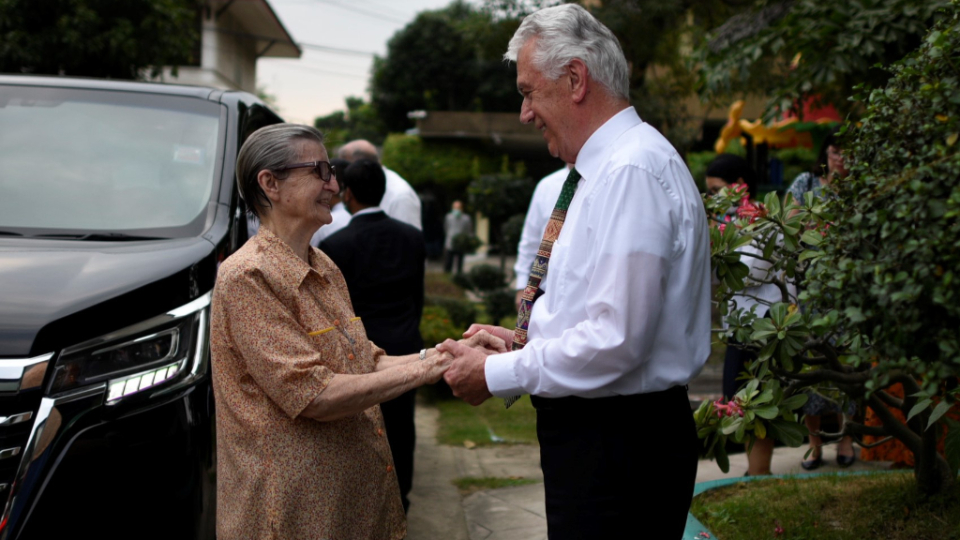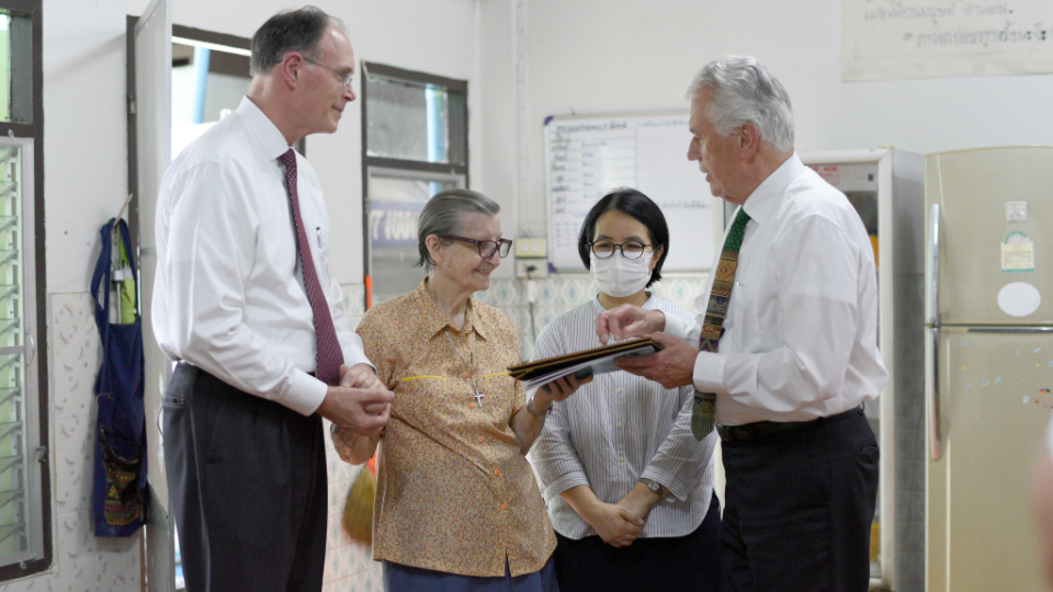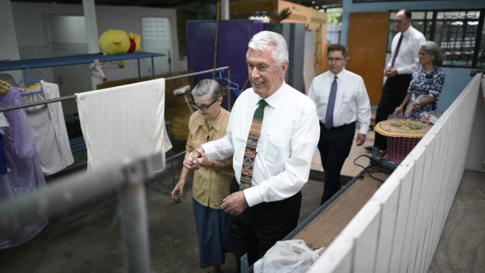 On a visit to the Good Shepherd Sisters in Bangkok, Elder Uchtdorf and Sister Louise became fast friends. At 88 years old, Sister Louise has dedicated her entire life to providing shelter and educational training for women at risk.