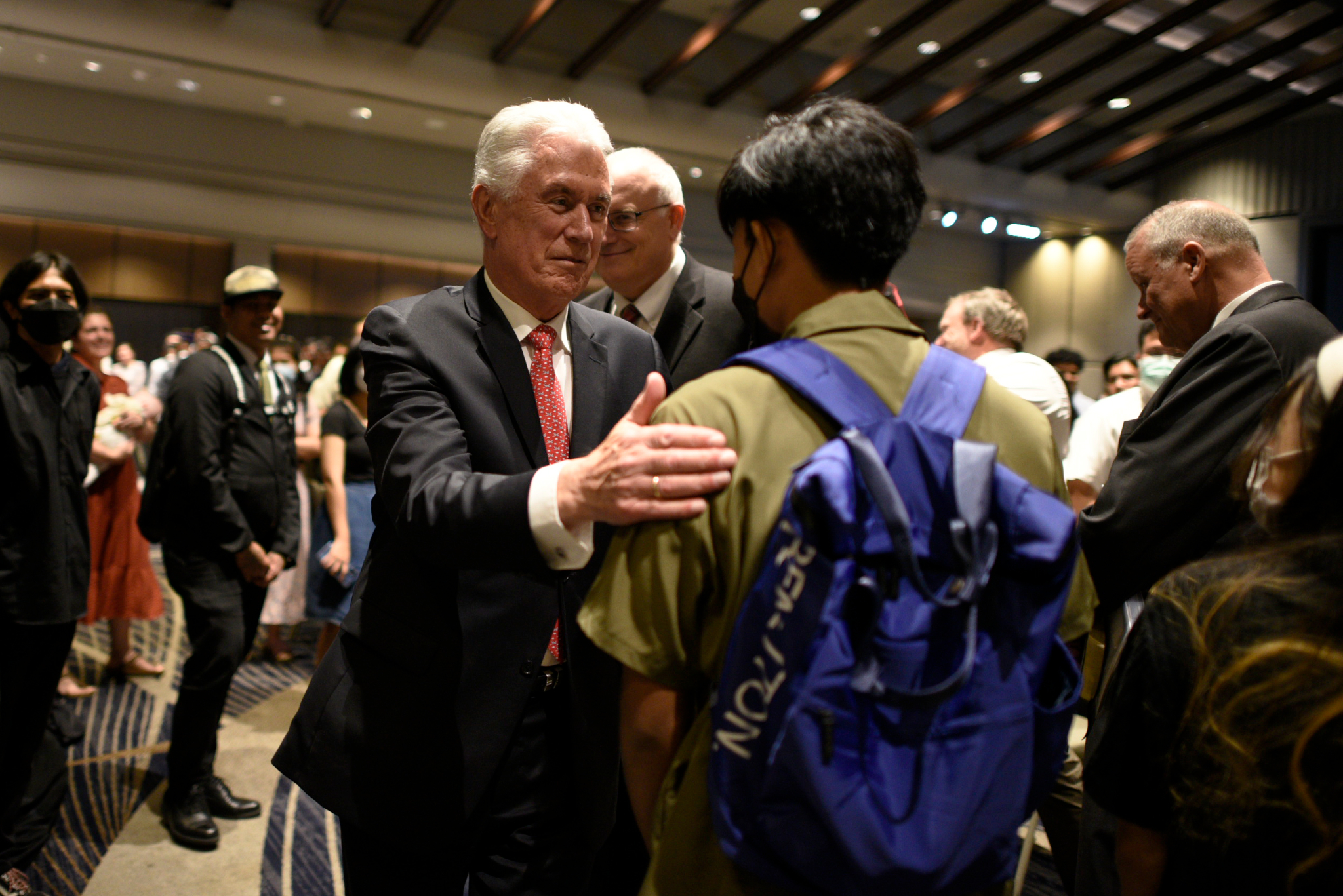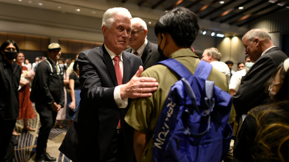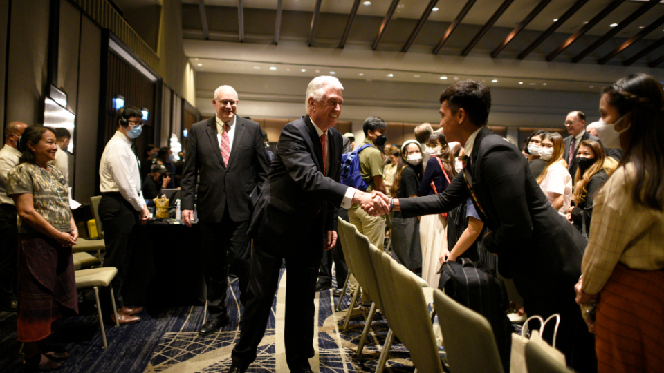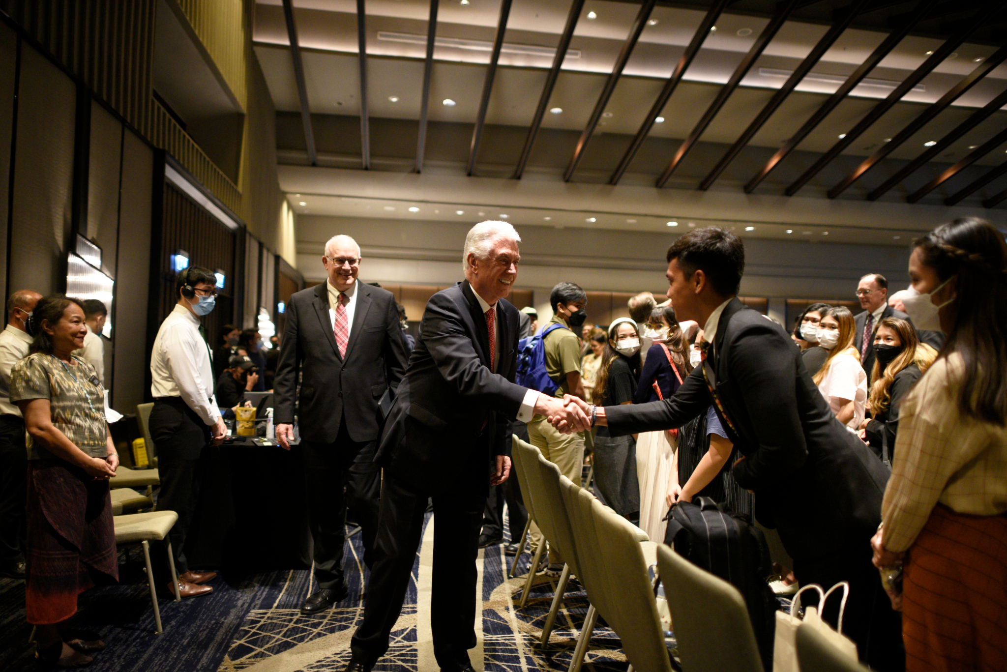 Elder Dieter F. Uchtdorf of the Quorum of the Twelve Apostles greets youth at the For the Strength of Youth conference in Thailand on Tuesday, October 25, 2022, during his ministry visit to Southeast Asia.2022 by Intellectual Reserve, Inc. All rights reserved.For the first time, a For the Strength of Youth conference was held in Thailand. More than 300 enthusiastic youth came from all over the country to participate. Elder Uchtdorf made a surprise visit and passed out the new “For the Strength of Youth” guide. He told the youth that God will help them make correct choices.