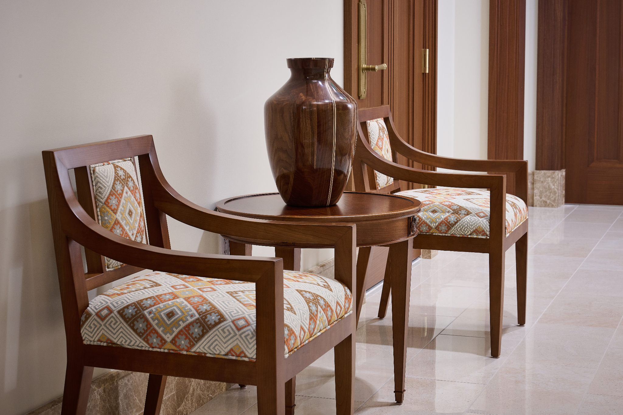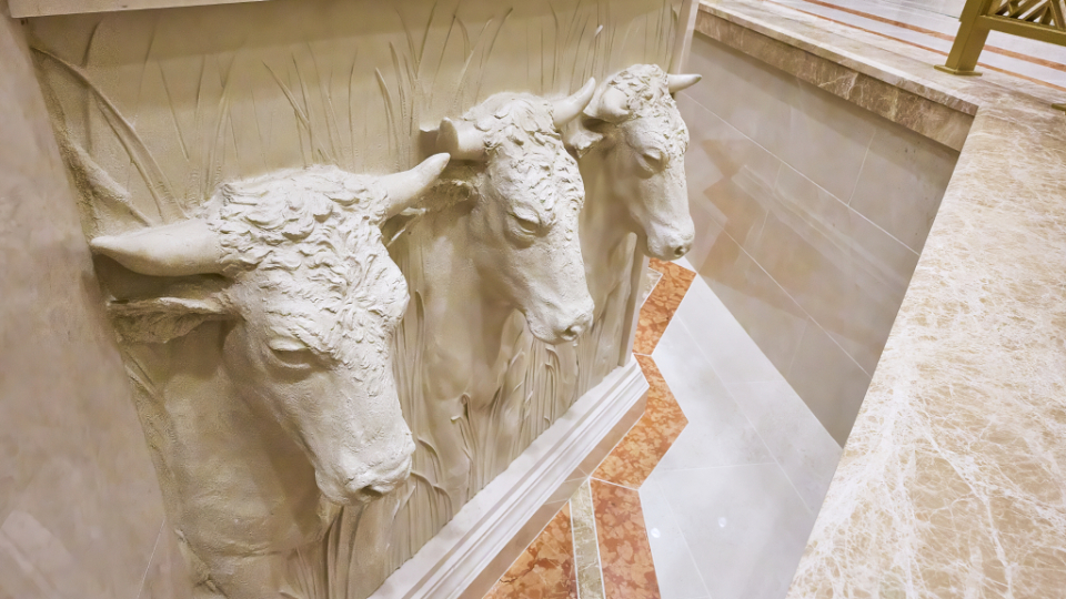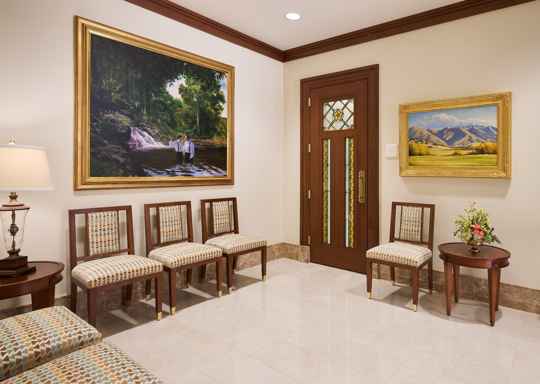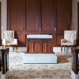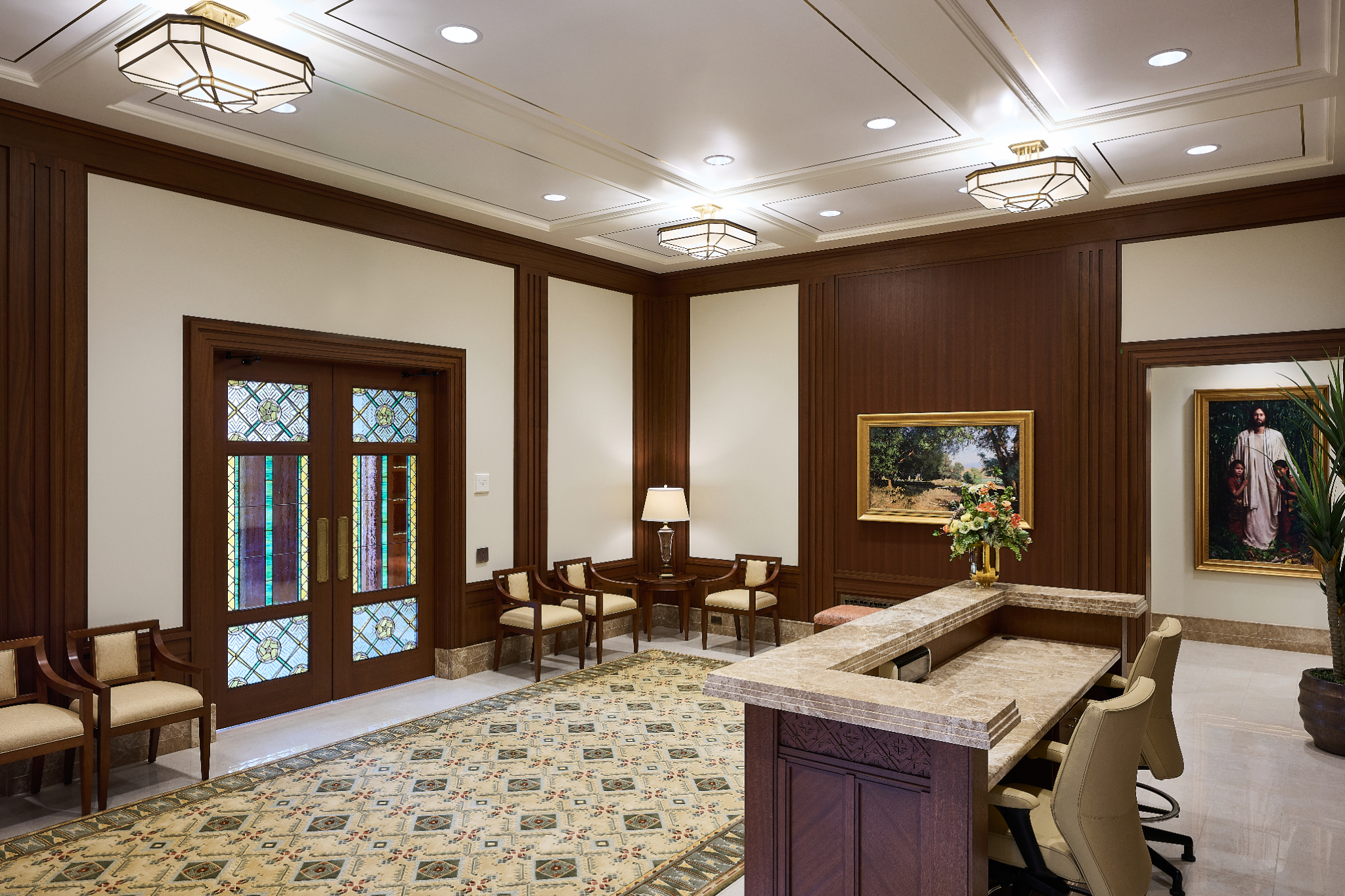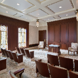 The exterior of this temple is structural steel and stone veneer. The desert globemallow, a native flower, is beautifully integrated throughout the building. The rich cultural heritage of the Paiute and Shoshone tribes inspires the geometric patterns, and the use of orange, yellow and green accent colors throughout the building reflects the vibrant hues found in the landscapes of Elko.
