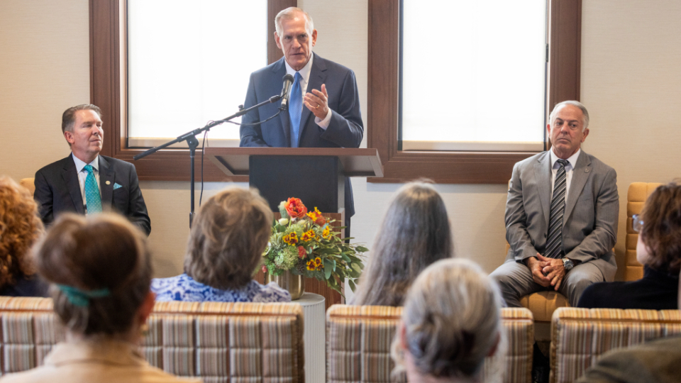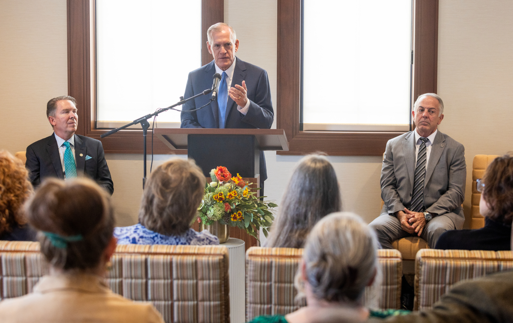 Elder Bangerter participated in the news conference with the governor and Elko Mayor Reece Keener.