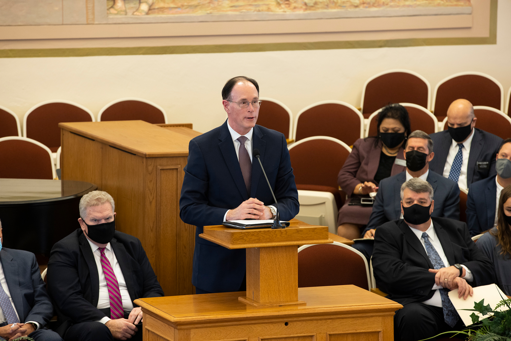 After President Nelson’s remarks, additional details about both temples were shared by Elder Ronald A. Rasband of the Quorum of the Twelve Apostles, Temple Department Executive Director Elder Kevin R. Duncan, Bishop W. Christopher Waddell of the Presiding Bishopric and Special Projects Department Managing Director Brent Roberts.
