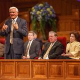 Elder Jeffrey R. Holland of the Quorum of the Twelve Apostles greeted the large audience of religious leaders and “friends of all faiths” in the historic Tabernacle, which has been the setting of worship and inspiring music for 150 years. “World leaders and men and women of many faiths have spoken here, including Dr. Zacharias in 2004,” said Elder Holland. “We’re very, very happy to have him back.”