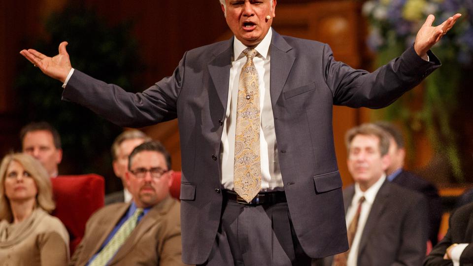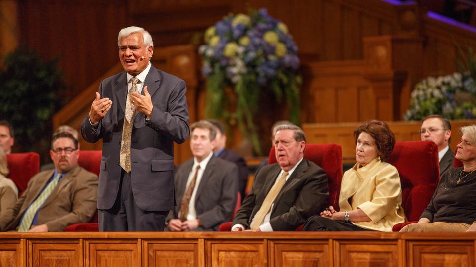 Evangelist and author Dr. Ravi Zacharias addressed the topics of faith, family and freedom in a gathering at the Tabernacle on Temple Square on Saturday, 18 January 2014. “We must build our lives on things that are eternal,” Zacharias told more than 3,000 gathered in the Tabernacle in his message titled “Lessons From History, Building a Nation Under God.” During his speech, he related lessons learned from the Bible and compared them to modern-day events.