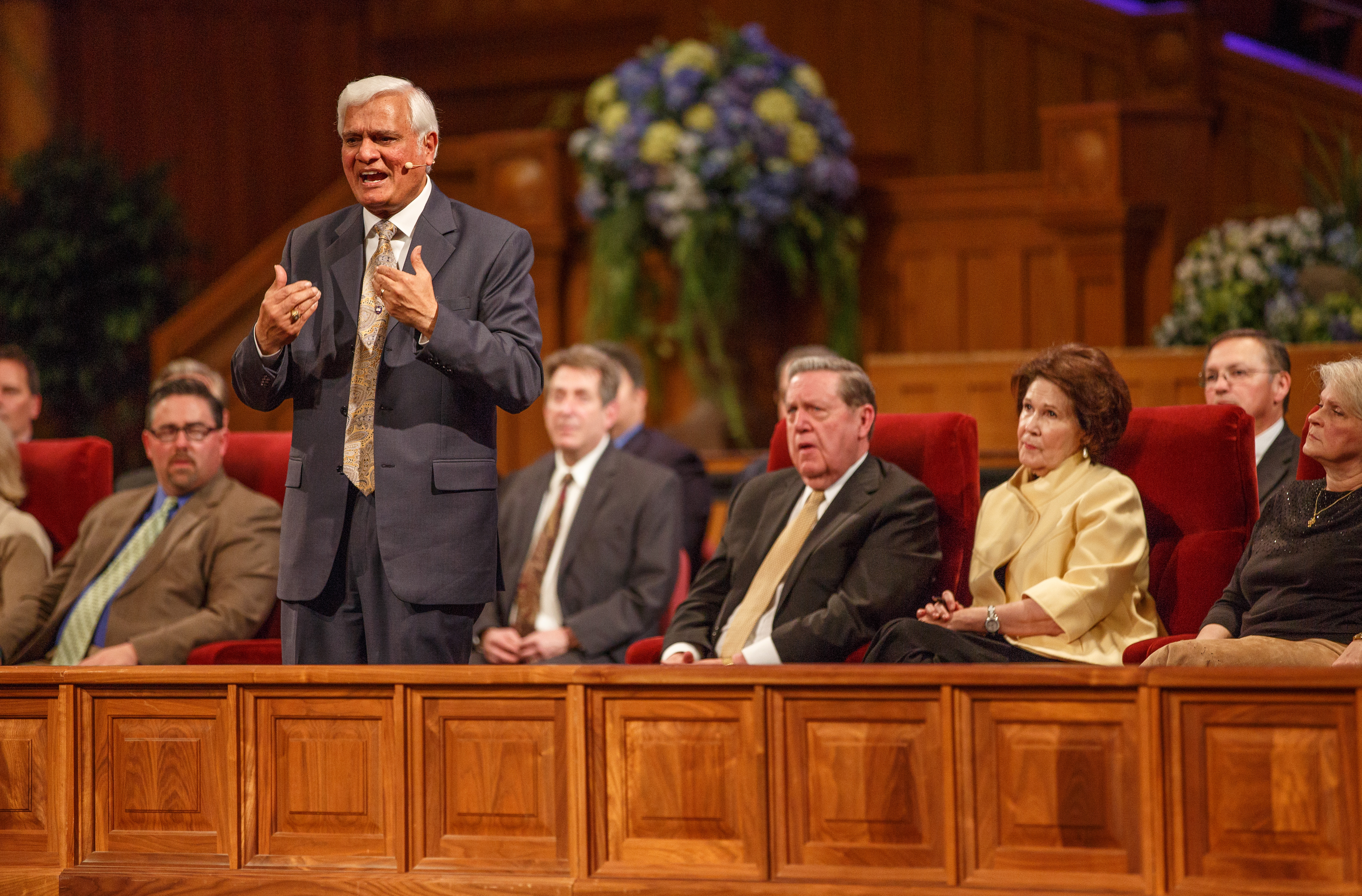 This is the second time Zacharias has spoken in the Tabernacle and his third visit to Utah since 1994. Zacharias is founder and president of Ravi Zacharias International Ministries, headquartered in Atlanta, Georgia, with offices in Canada, India, Singapore, the United Kingdom, the United Arab Emirates and Hong Kong. The event was presented by Standing Together, a network of evangelical congregations in Utah, and hosted by The Church of Jesus Christ of Latter-day Saints to promote religious freedom.
