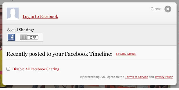 When the sharing button has been turned on, you will be taken to a Facebook sign-on screen.