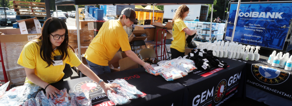 - Bulk item distribution (air purifiers, PPE, hygiene kits, cleanup kits, meal kits, water, and items for children, as supplies last)