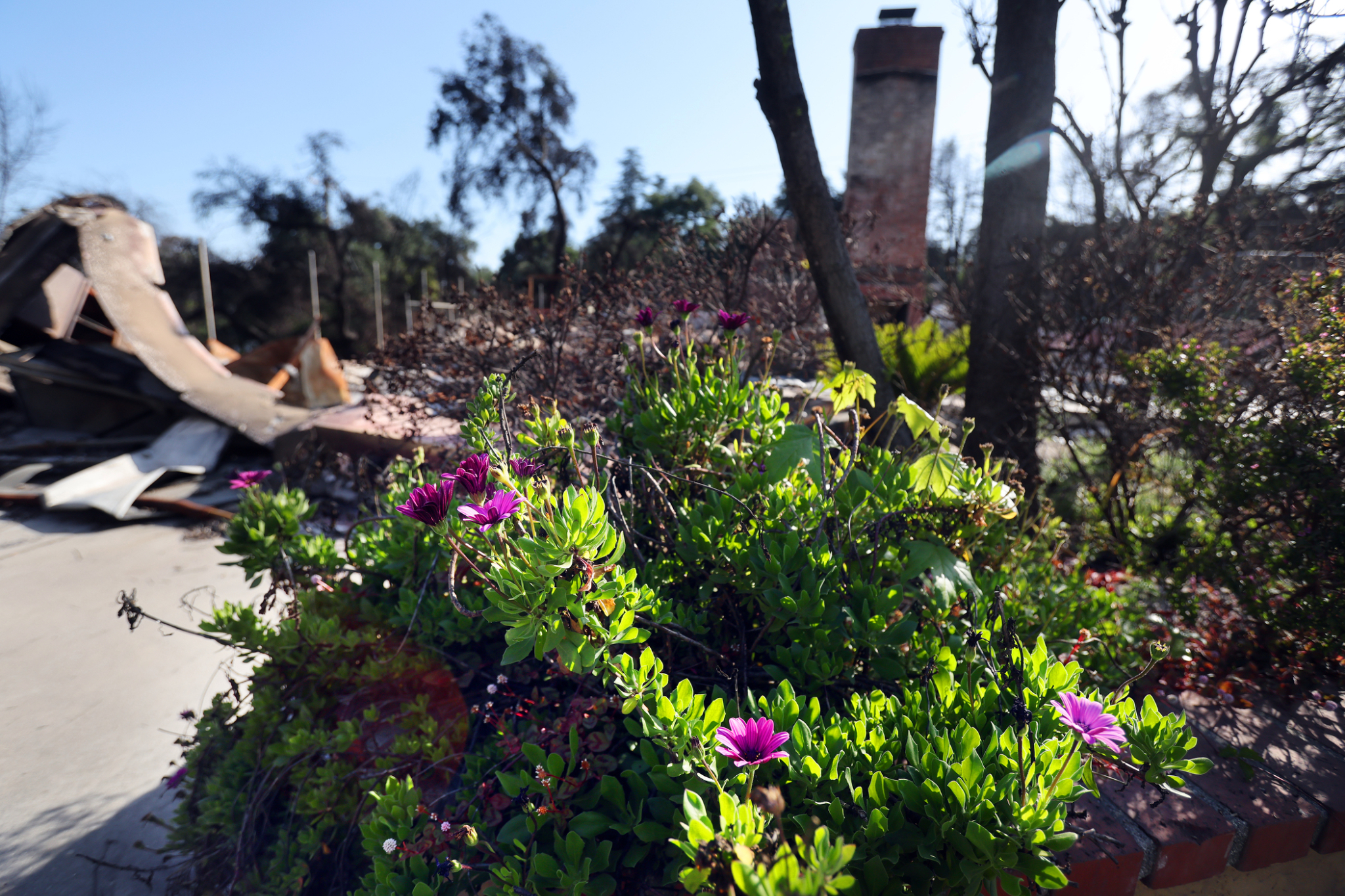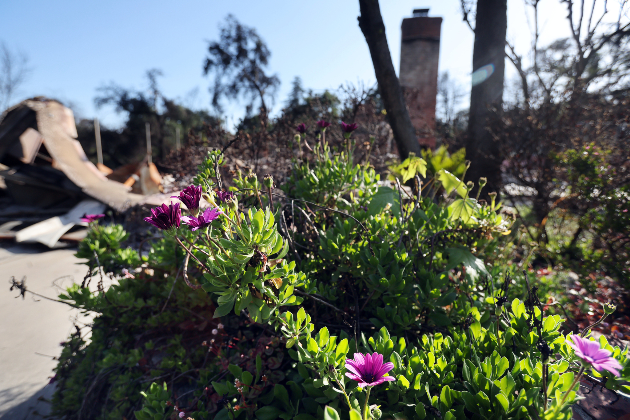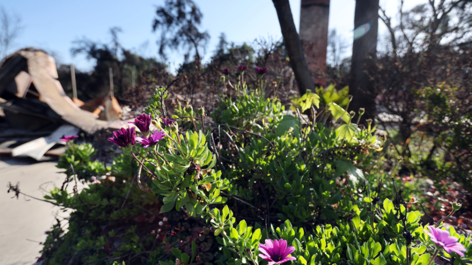 Drive through some of the areas affected by the 2025 Southern California wildfires and you’ll see a small sign of hope: Flowers blooming and grass growing on desolate lots where only chimneys and rubble remain.