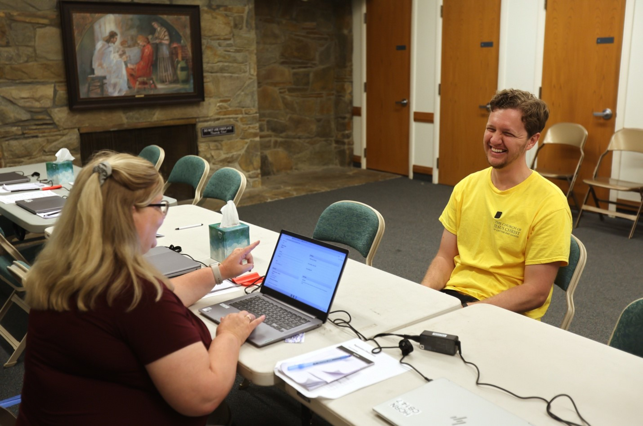 Full-time missionary Elder Lane Bailey, right, helps a family who are survivors of the Eaton Fire, as they gather needed supplies during a Multi-Agency Resource Center (MARC), led by a joint venture of the American Red Cross and Emergency Network of Los Angeles (ENLA) in Pasadena, California, on Wednesday, May 14, 2025.2025 by Intellectual Reserve, Inc. All rights reserved.One of those Latter-day Saint volunteers is Josh Smith, himself a survivor of the Eaton fire. The MARC in Pasadena is special for him because it’s the church building where he worships every week.