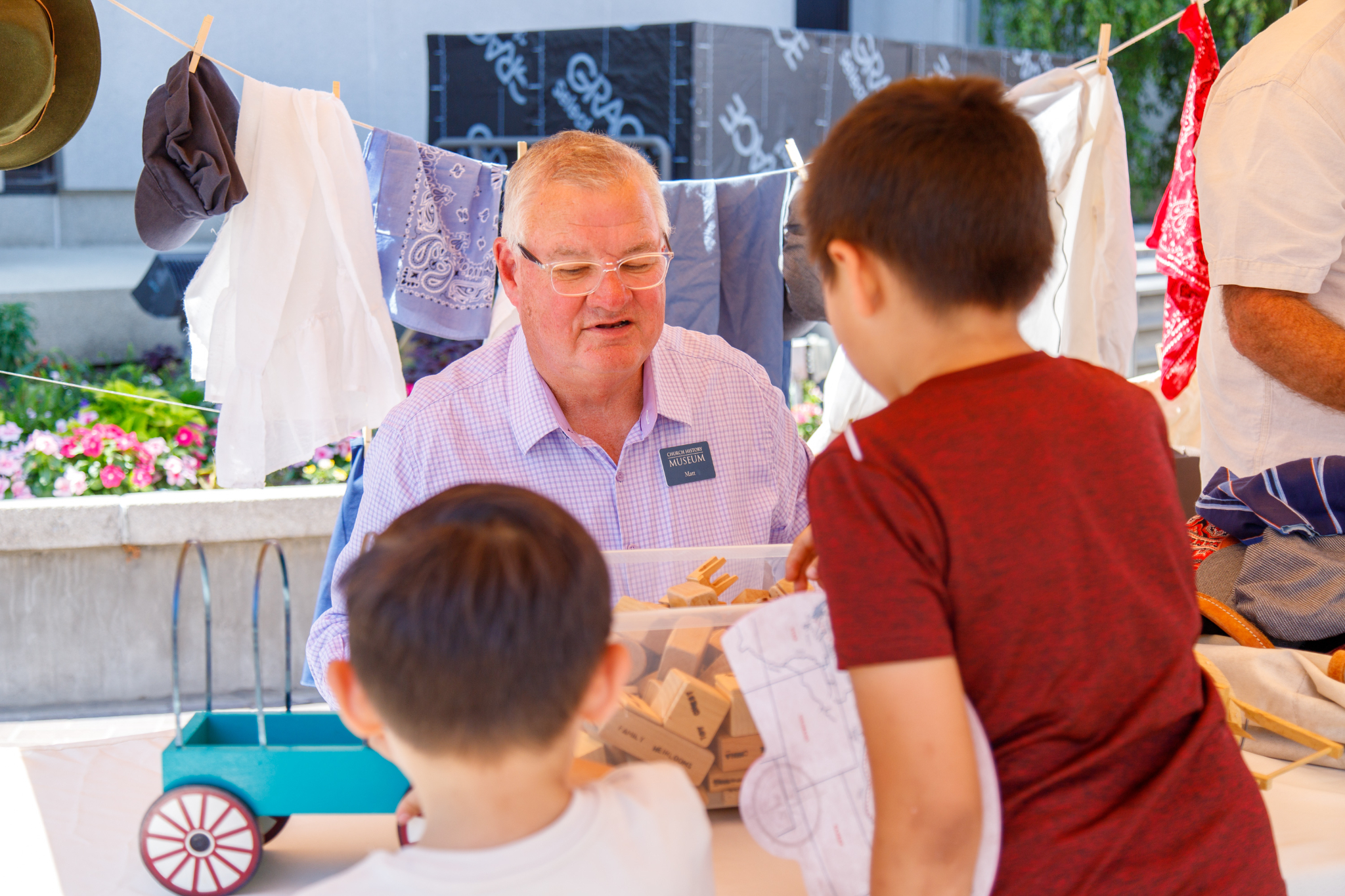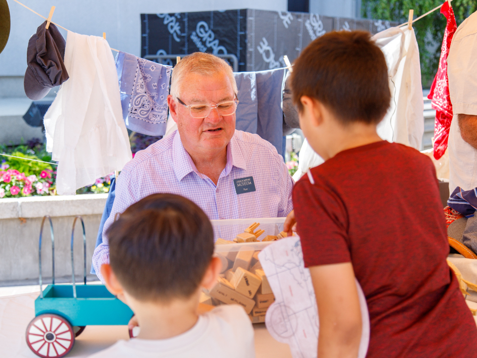 Nineteen booths surrounded the Church History Museum and featured musical performances, crafts and demonstrations. Families and individuals enjoyed activities and exhibits and listened to songs originally played along the Oregon Trail.