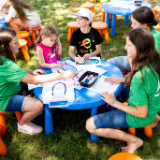 Bunch came by the FamilySearch booth to visit with volunteers on Monday, July 3, 2023.