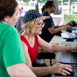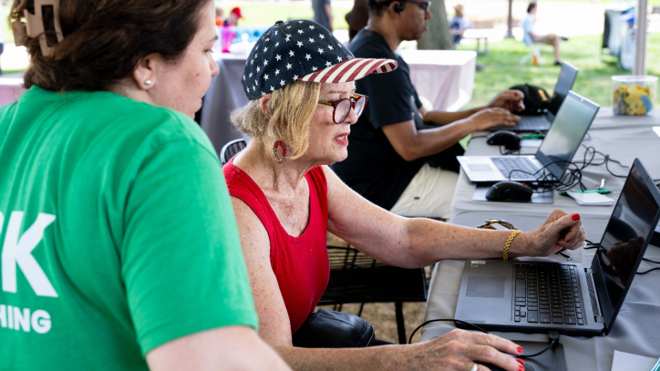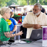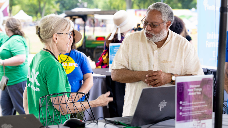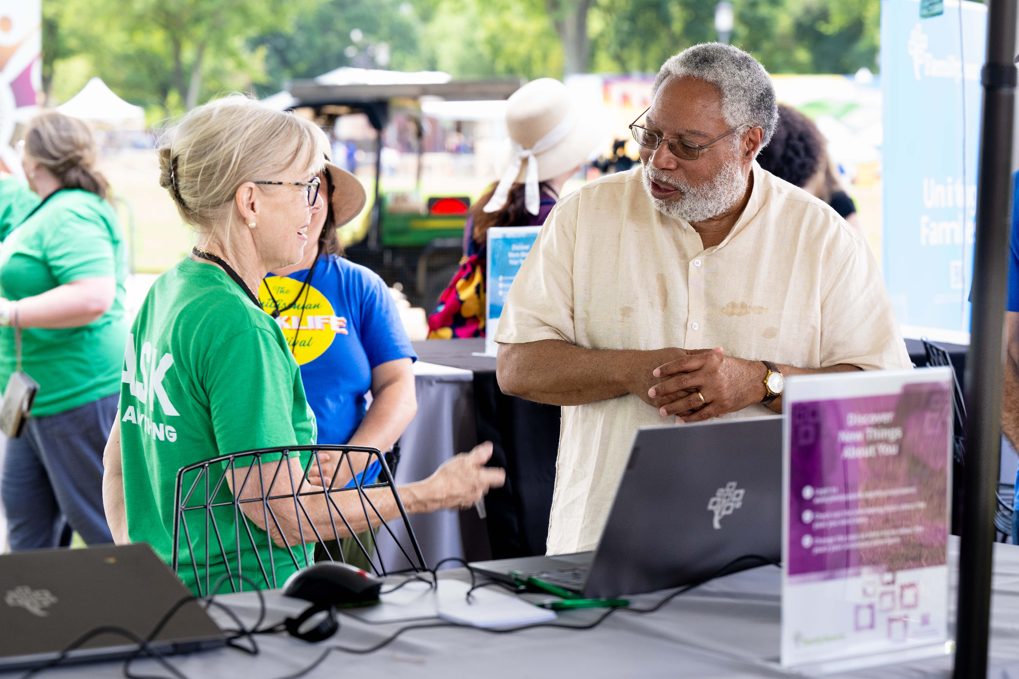 Smithsonian Secretary Lonnie Bunch visits the FamilySearch booth during the Folklife Festival on the National Mall in Washington, D.C., on Monday, July 3, 2023. 2023 by Intellectual Reserve, Inc. All rights reserved.“Working with FamilySearch and others, we were able to sort of make the thousands of records of the Freedmen’s Bureau accessible through the research center,” Bunch said. “It’s really that kind of thing that says history is too important just to be in the hands of historians. It ought to be in the hands of all of our families, and that’s why I love FamilySearch.”