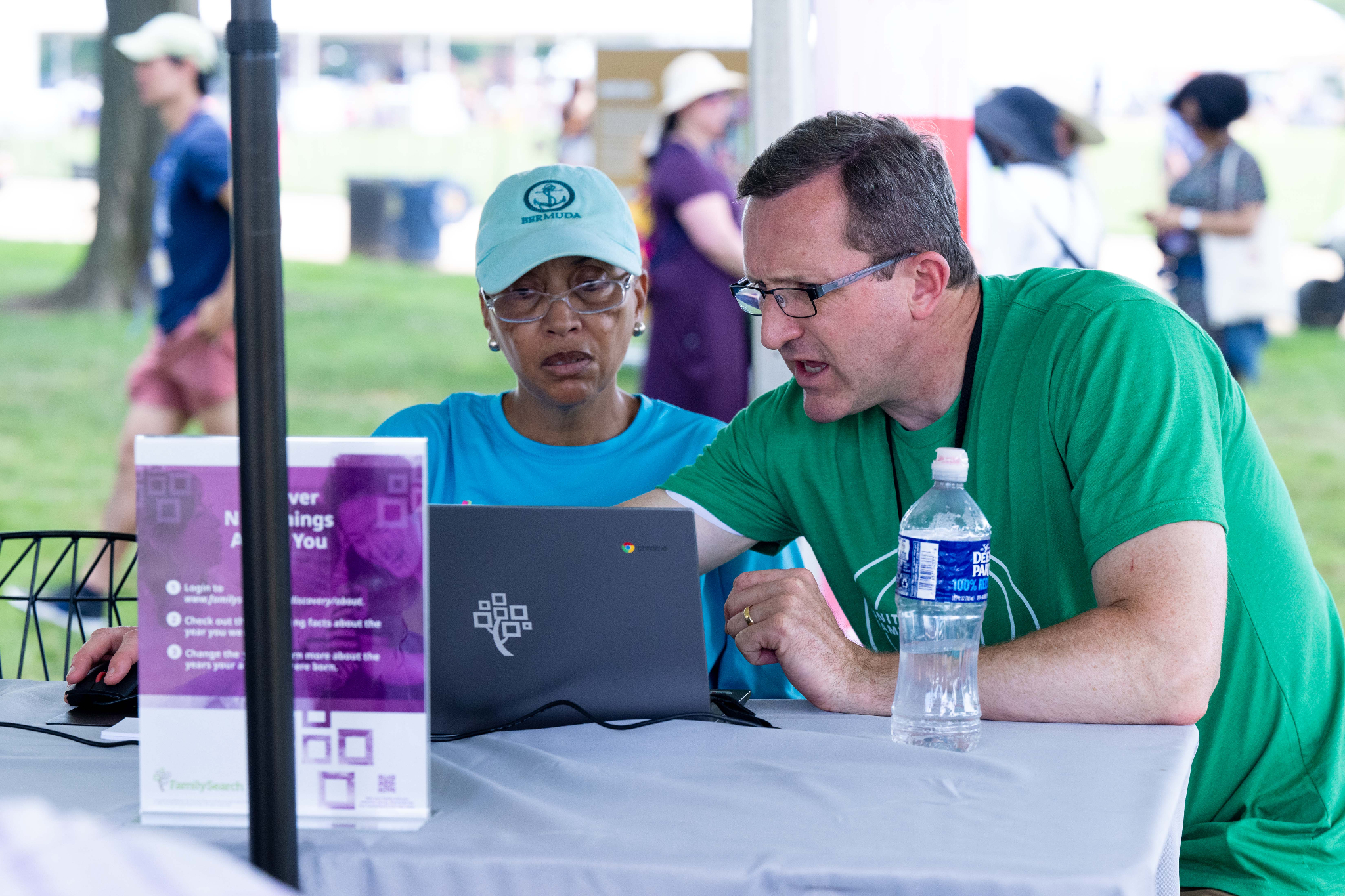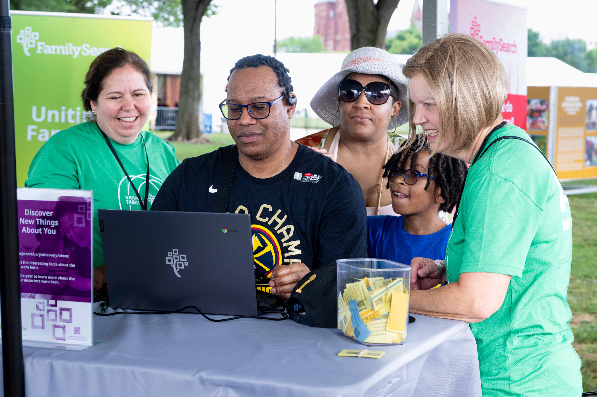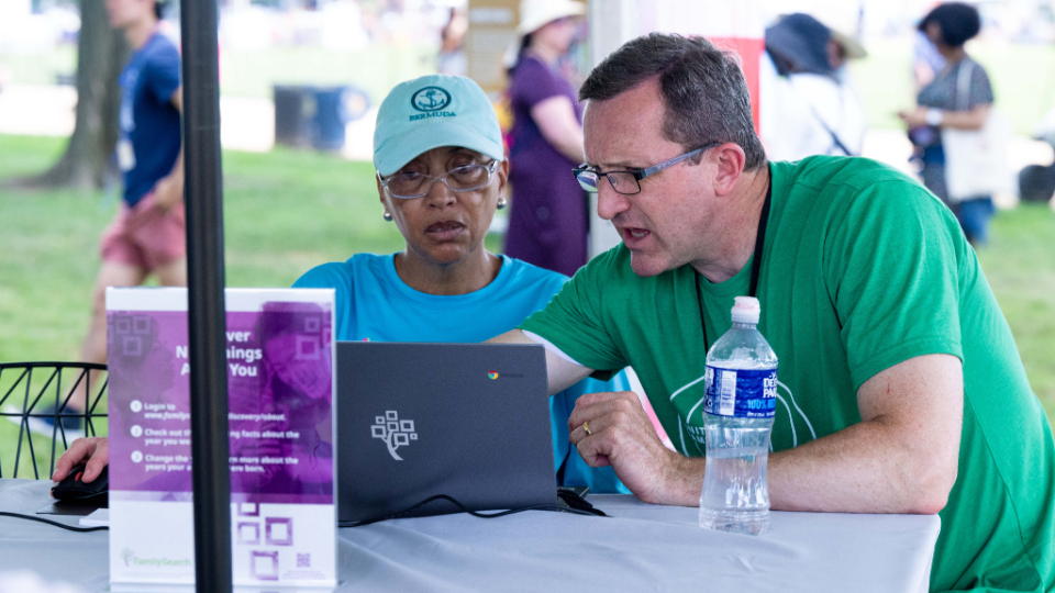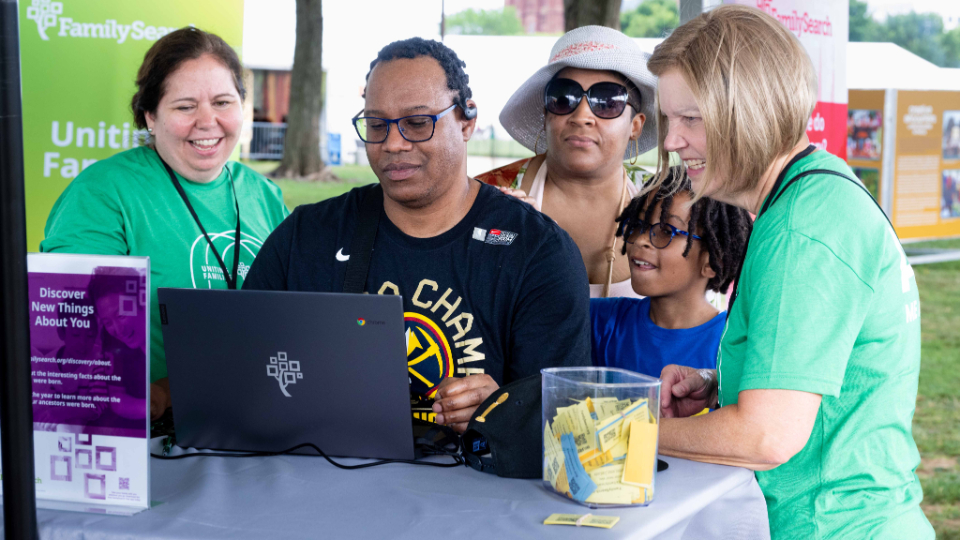 FamilySearch volunteers are staffing a booth with interactive displays during the festival to show others how to find information about their ancestors online.