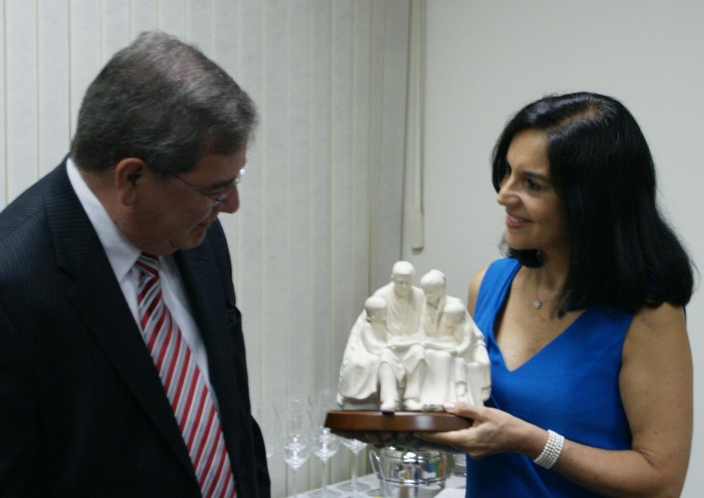 During her visit, Elder Jairo Mazzagardi, a counselor in the area presidency, presented the first lady with a statue entitled “The Family.” She also received DVDs and CDs of the Mormon Tabernacle Choir.