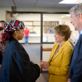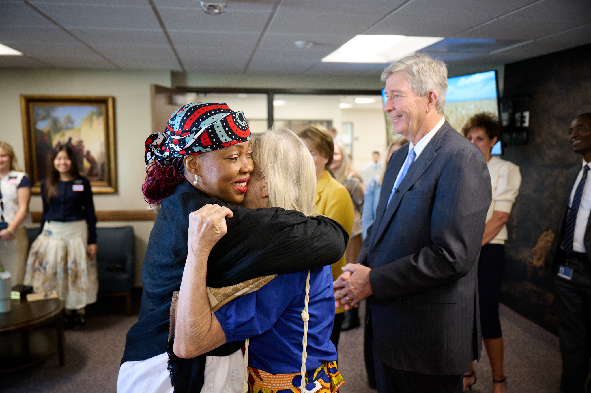 On Tuesday, the first lady met with Young Women General President Emily Belle Freeman and Sister J. Anette Dennis of the Relief Society General Presidency in the Relief Society Building on Temple Square. The sisters were introduced to Her Excellency during a visit to Africa last year.