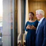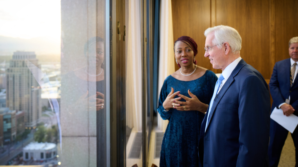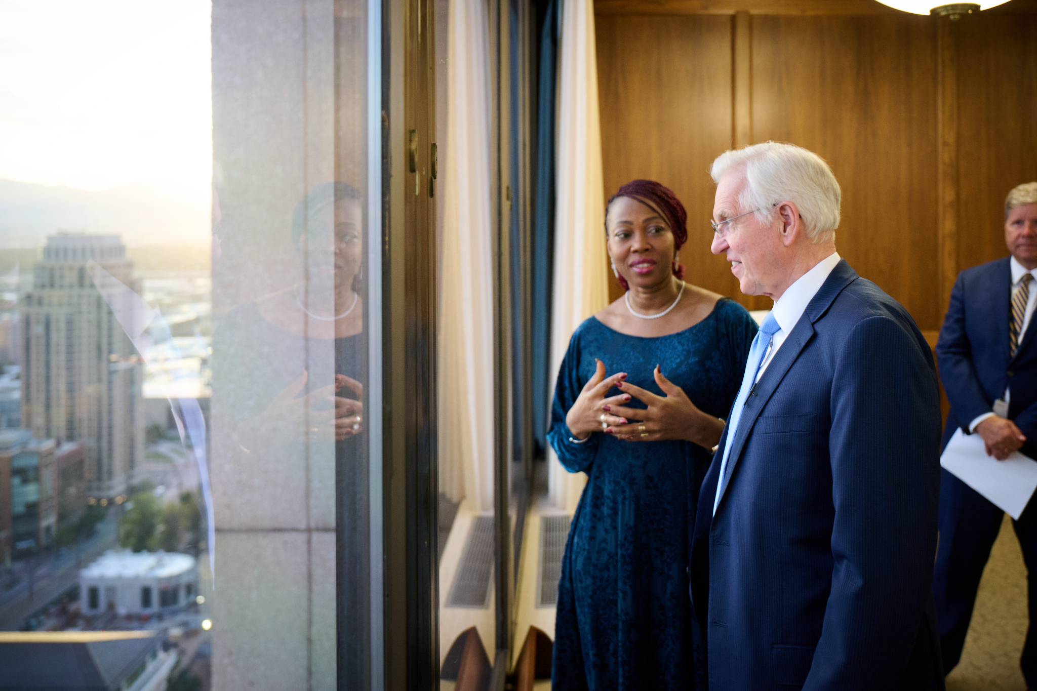 Elder Christofferson and Her Excellency discussed her experience at Welfare Square while taking a bird’s-eye view of the city from the 26th floor.