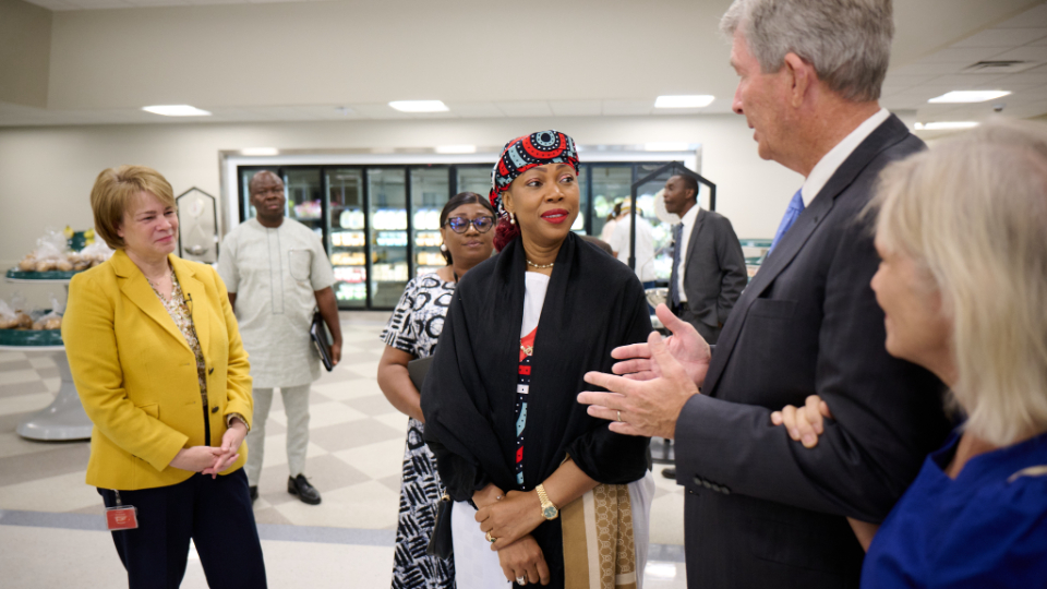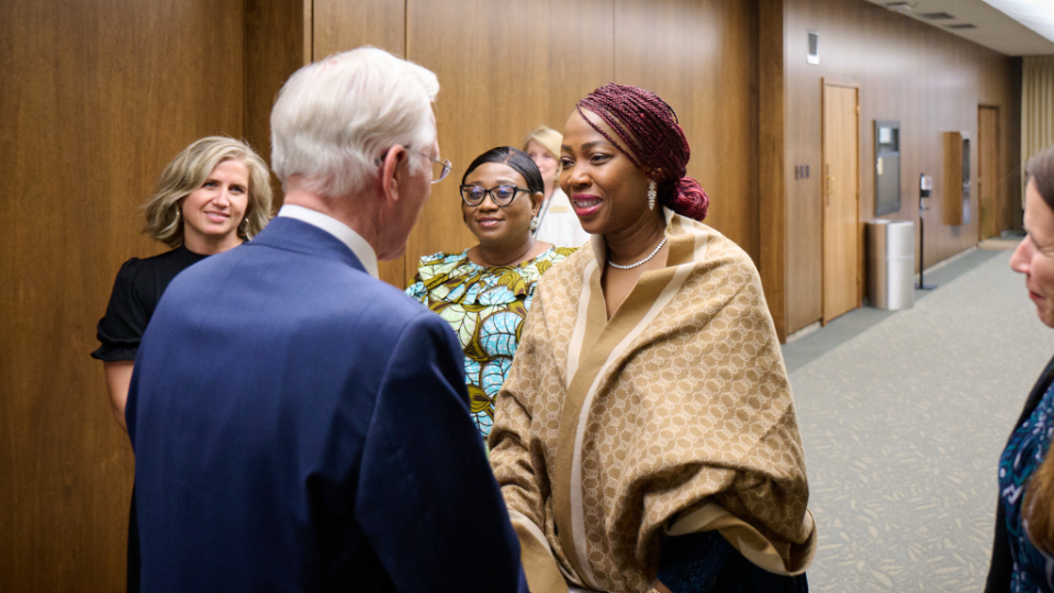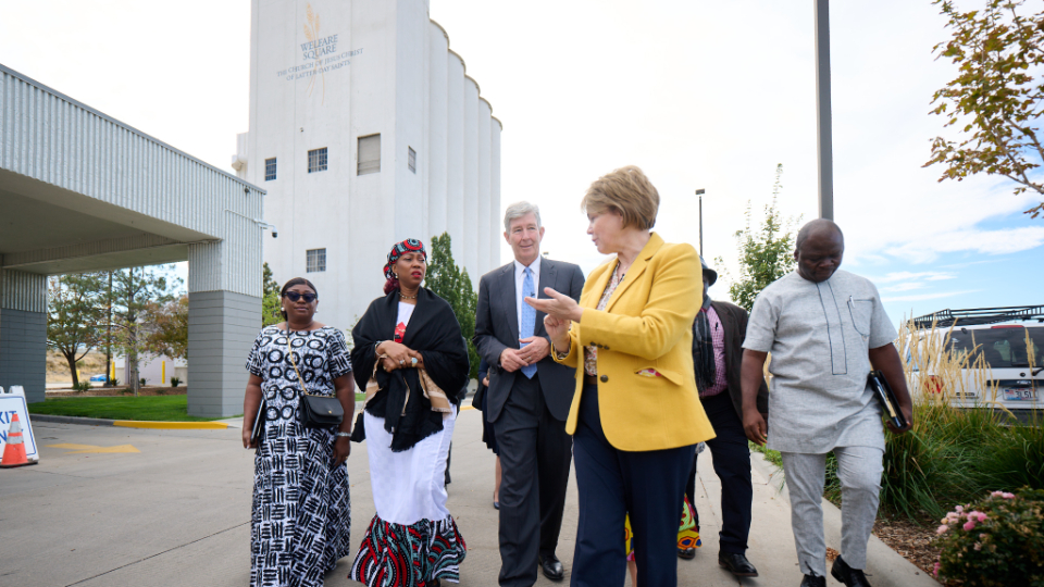 Her Excellency toured Welfare Square in Salt Lake City on Monday, October 21, 2024, where the Church assists those in need. The tour was led by Elder S. Gifford Nielsen, an emeritus member of the Seventy and former president of the Africa West Area, and his wife, Wendy, and Sharon Eubank, director of Humanitarian Services for the global Church.